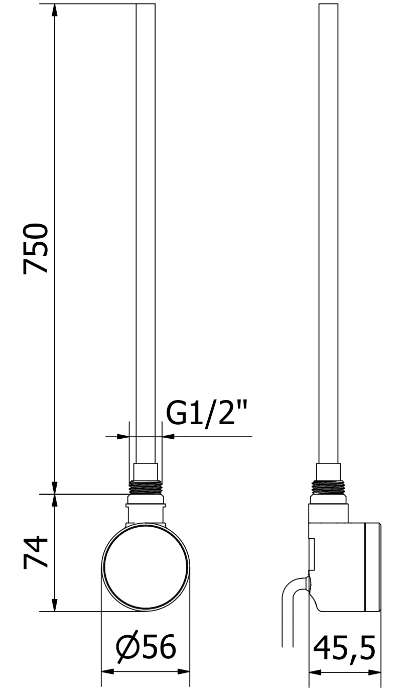 Μήκος θερμαντικού στοιχείου: 750 mm