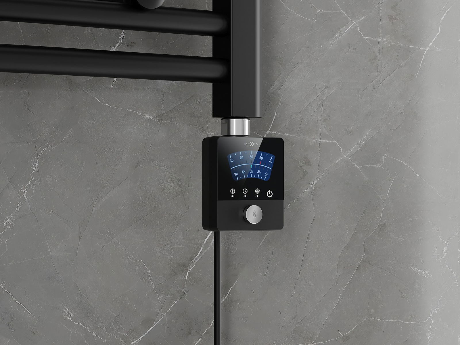 Ηλεκτρική αντίσταση Mexen FA-BG8 300 W σε μαύρο χρώμα είναι μια τεχνολογικά προηγμένη συσκευή που παρέχει αποτελεσματική θέρμανση. Με συνολικό μήκος 409 mm και θερμαντικό στοιχείο μήκους 310 mm, είναι ιδανική για διάφορες εφαρμογές. Η αντίσταση προσφέρει λειτουργίες όπως Sensitive (ρύθμιση θερμοκρασίας με ακρίβεια 5 βαθμών), Comfort (επιλογή στεγνώματος), Smart (εβδομαδιαίο πρόγραμμα λειτουργίας), ECO (εξοικονόμηση ενέργειας), Anti-frost (προστασία από πάγωμα) και γονικός έλεγχος.