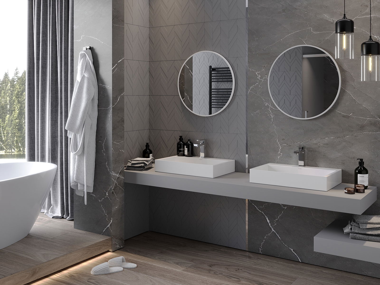 Καθρέφτης κατασκευασμένος από πρώτες ύλες υψηλότερης ποιότητας, ανθεκτικές σε εξωτερικούς παράγοντες όπως η υγρασία και ο υδρατμός, είναι άριστη επιλογή για χώρους όπως το μπάνιο. Η χρήση υλικών υψηλής ποιότητας καθιστά τον καθρέφτη ανθεκτικό και ανθεκτικό στις γρατσουνιές.