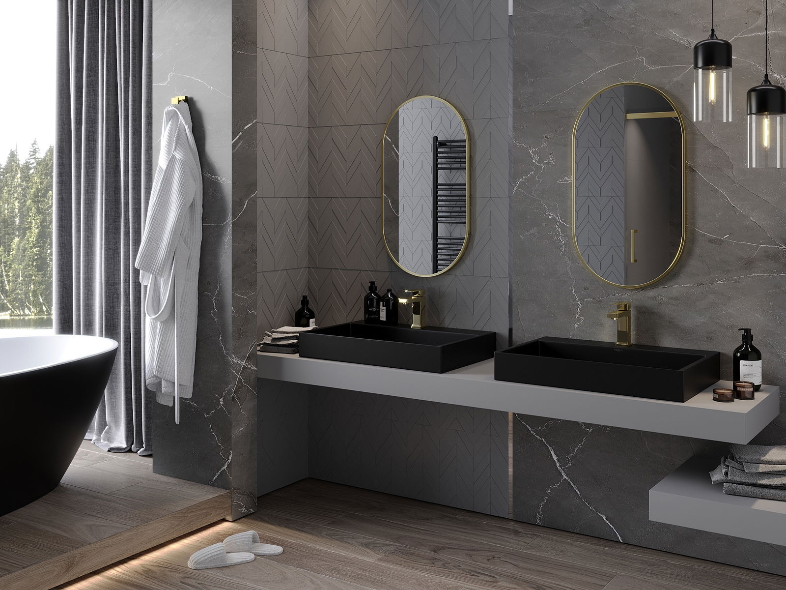 Mexen Loft οβάλ καθρέφτης μπάνιου 80 x 45 cm, χρυσό πλαίσιο - 9851-080-045-000-50