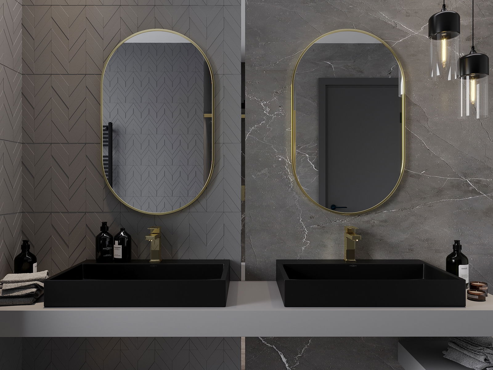 Mexen Loft οβάλ καθρέφτης μπάνιου 90 x 55 cm, χρυσό πλαίσιο - 9851-090-055-000-50