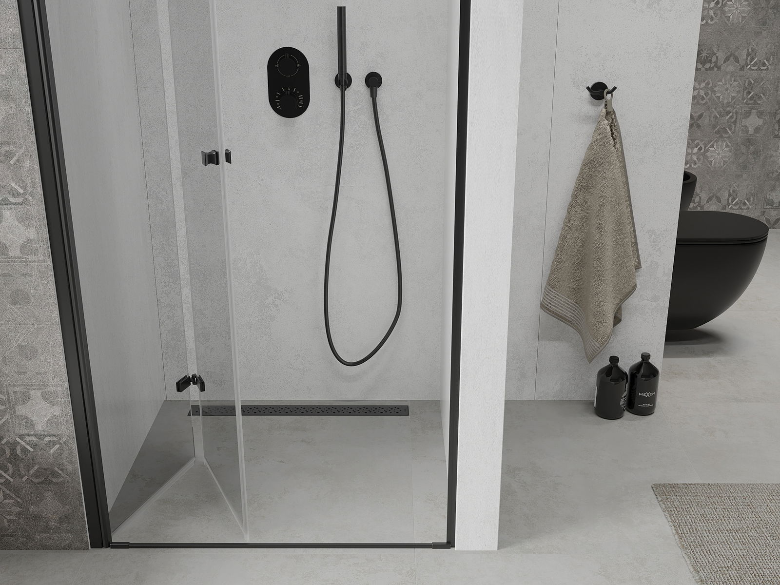 Mexen Rio τετράγωνη καμπίνα ντους 90 x 90 εκ., διάφανη, μαύρη - 860-090-090-70-00
