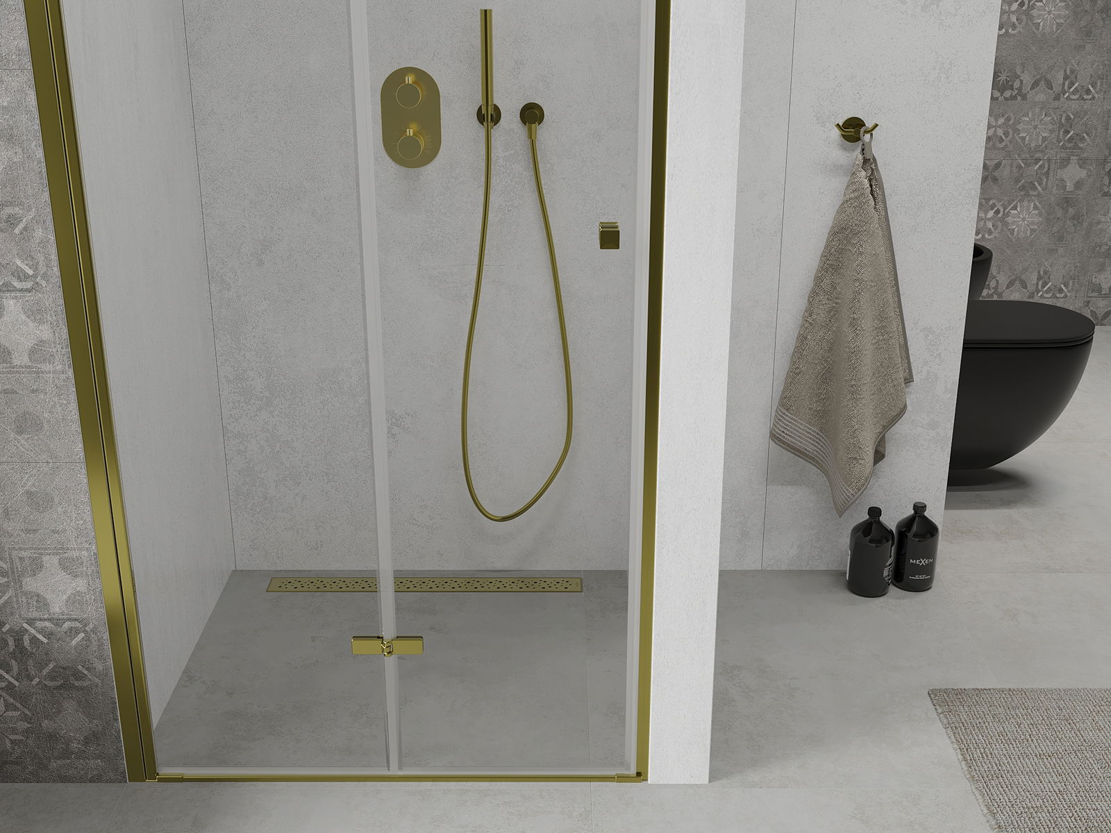 Mexen Lima πτυσσόμενες πόρτες ντους 90 cm, διαφανές, χρυσό - 856-090-000-50-00