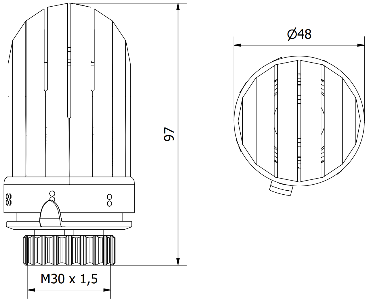 Πρόκειται για ένα πρότυπο μέγεθος σπειρώματος που χρησιμοποιείται σε πολλά θερμοστατικά κεφάλια, ιδιαίτερα σε συσκευές που χρησιμοποιούνται σε εγκαταστάσεις θέρμανσης. Το σύμβολο M30 σημαίνει ότι η εξωτερική διάμετρος του σπειρώματος είναι 30 mm, και το 1,5 mm σημαίνει ότι το βήμα του σπειρώματος είναι 1,5 mm.