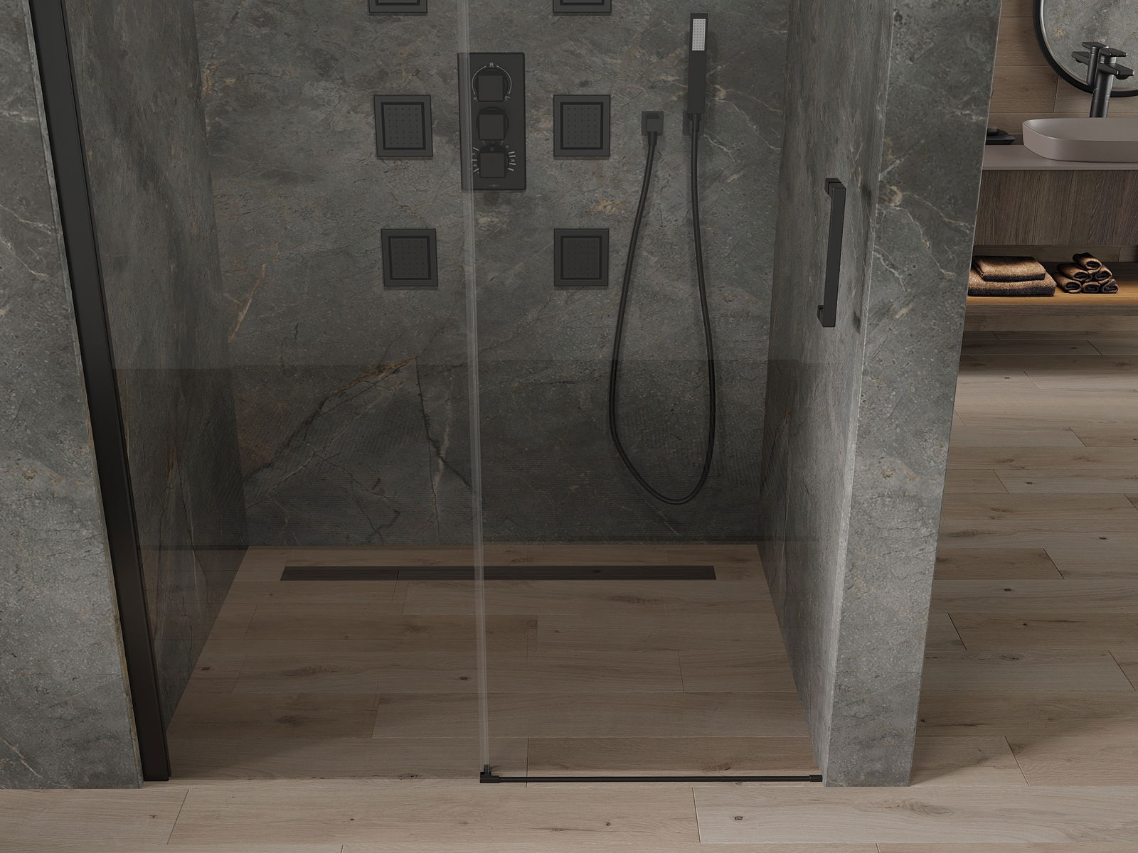 Χάρη στη χρήση ενός καθολικού συστήματος στήριξης, οι πόρτες ντους μπορούν να τοποθετηθούν είτε από τη δεξιά είτε από την αριστερή πλευρά, ανάλογα με τις ανάγκες. Έτσι μπορείτε να σχεδιάσετε με ευκολία ένα ντους προσαρμοσμένο στον χώρο του μπάνιου.