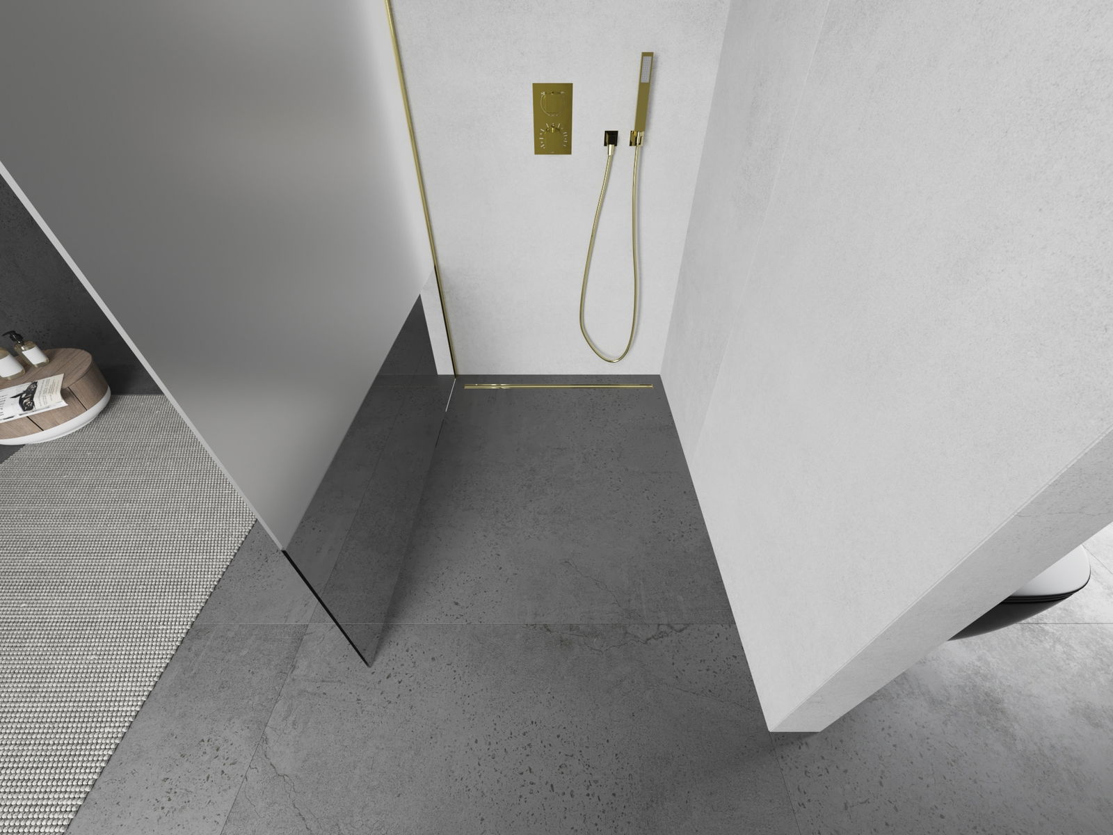 Mexen Kioto Πάνελ ντους Walk-in 110 x 200 cm, διαφανές/παγωμένο 8 mm, χρυσό - 800-110-101-50-35