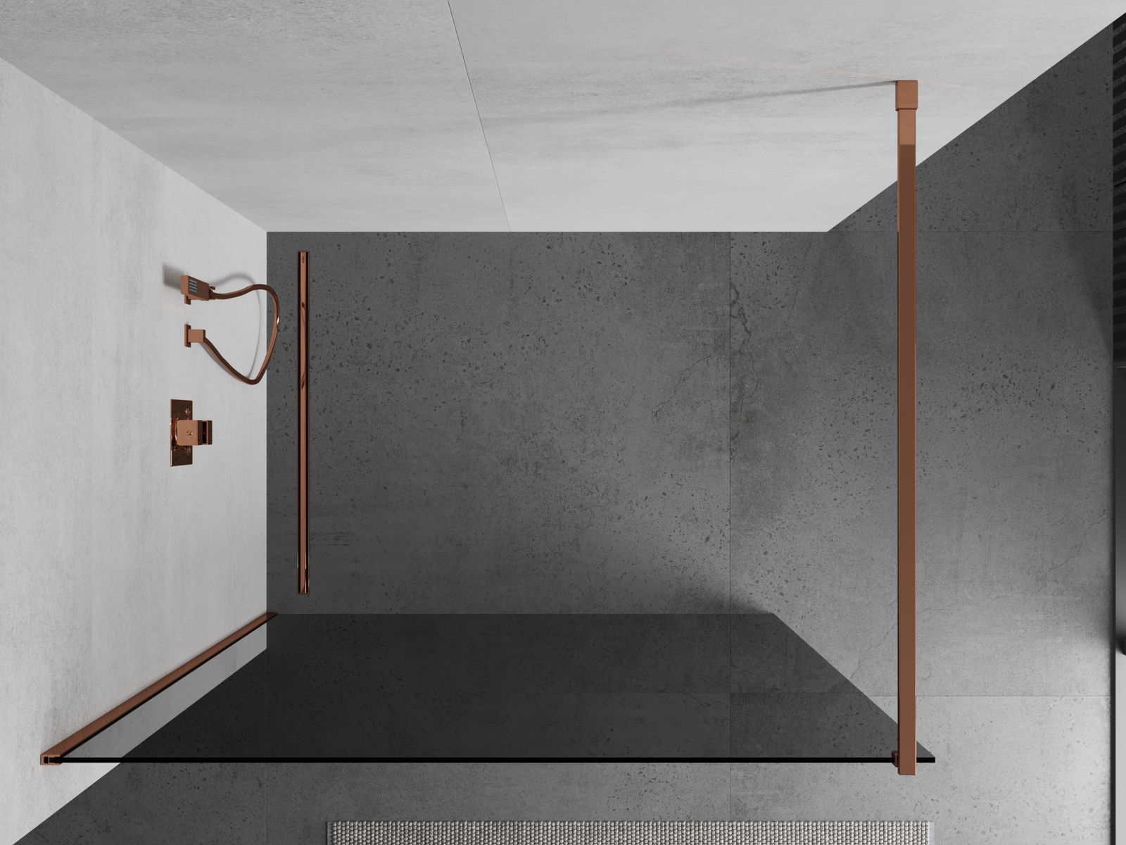 Mexen Kioto Πάνελ ντους Walk-in 110 x 200 cm, γραφίτης 8 mm, ροζ χρυσό - 800-110-101-60-40