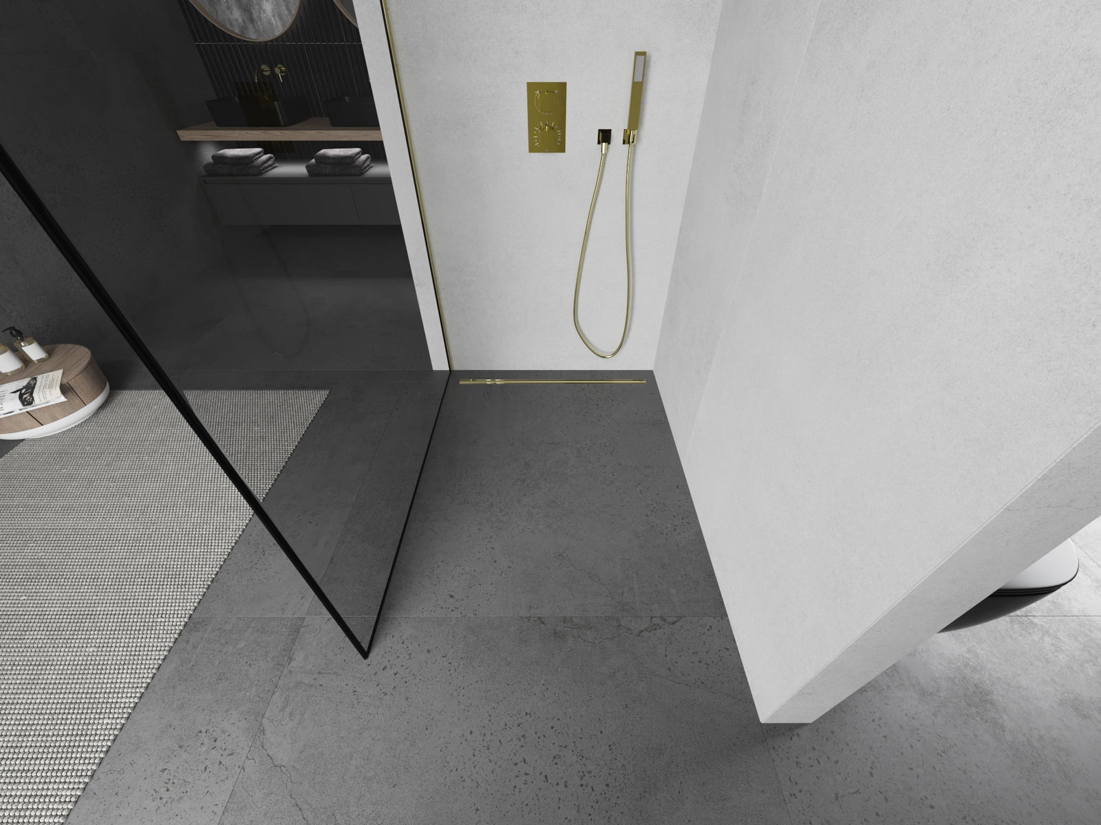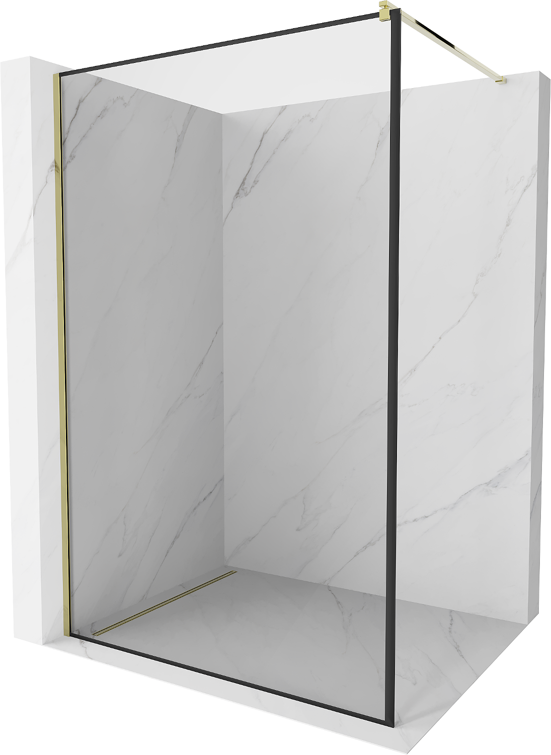 Mexen Kioto Πλαϊνό ντουζιέρας Walk-in 80 x 200 cm, μαύρο πλαίσιο 8 mm, χρυσό
