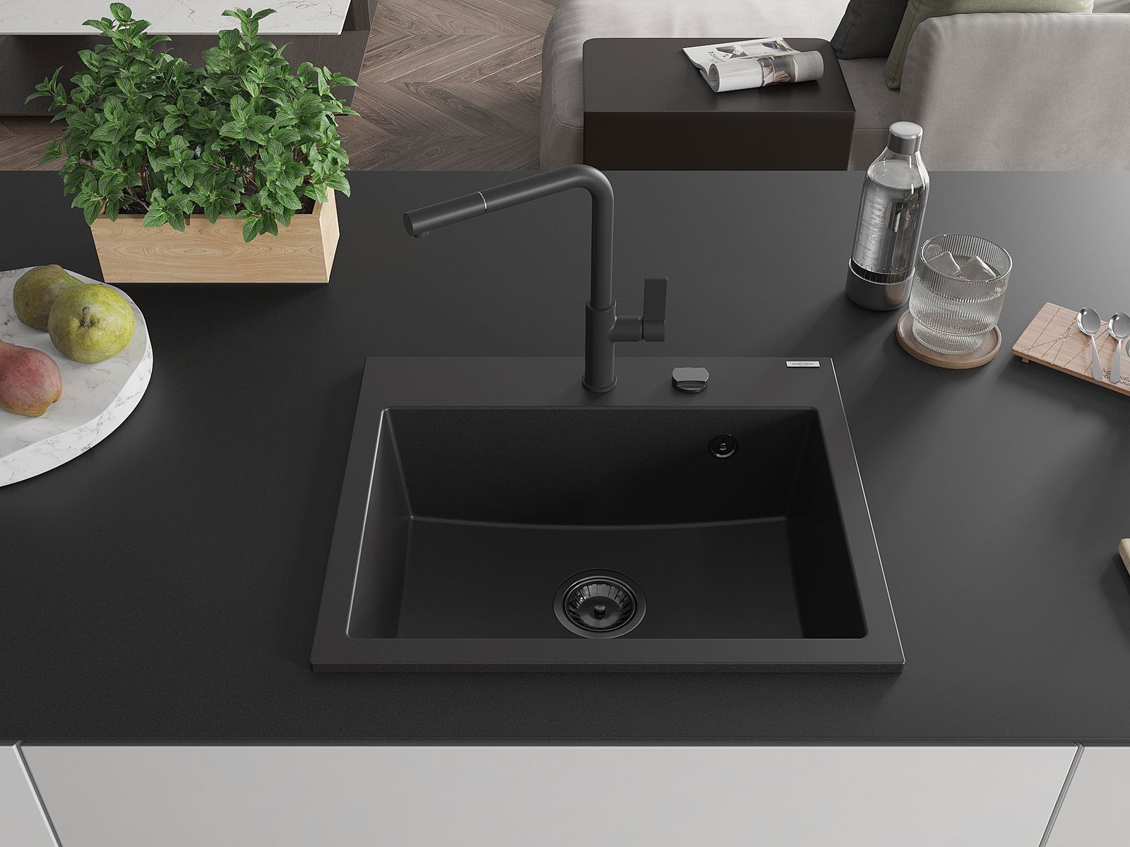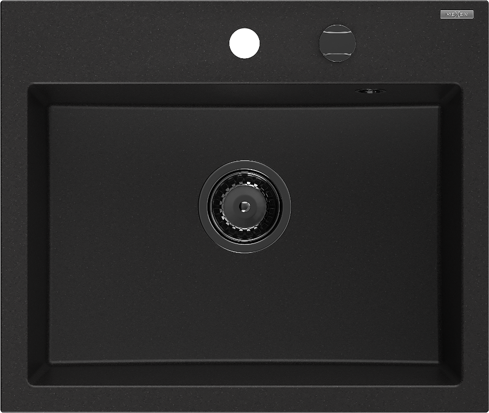 Mexen Oscar νεροχύτης από γρανίτη 1-θάλαμος 580 x 490 mm, μαύρος, σιφόνι μαύρο
