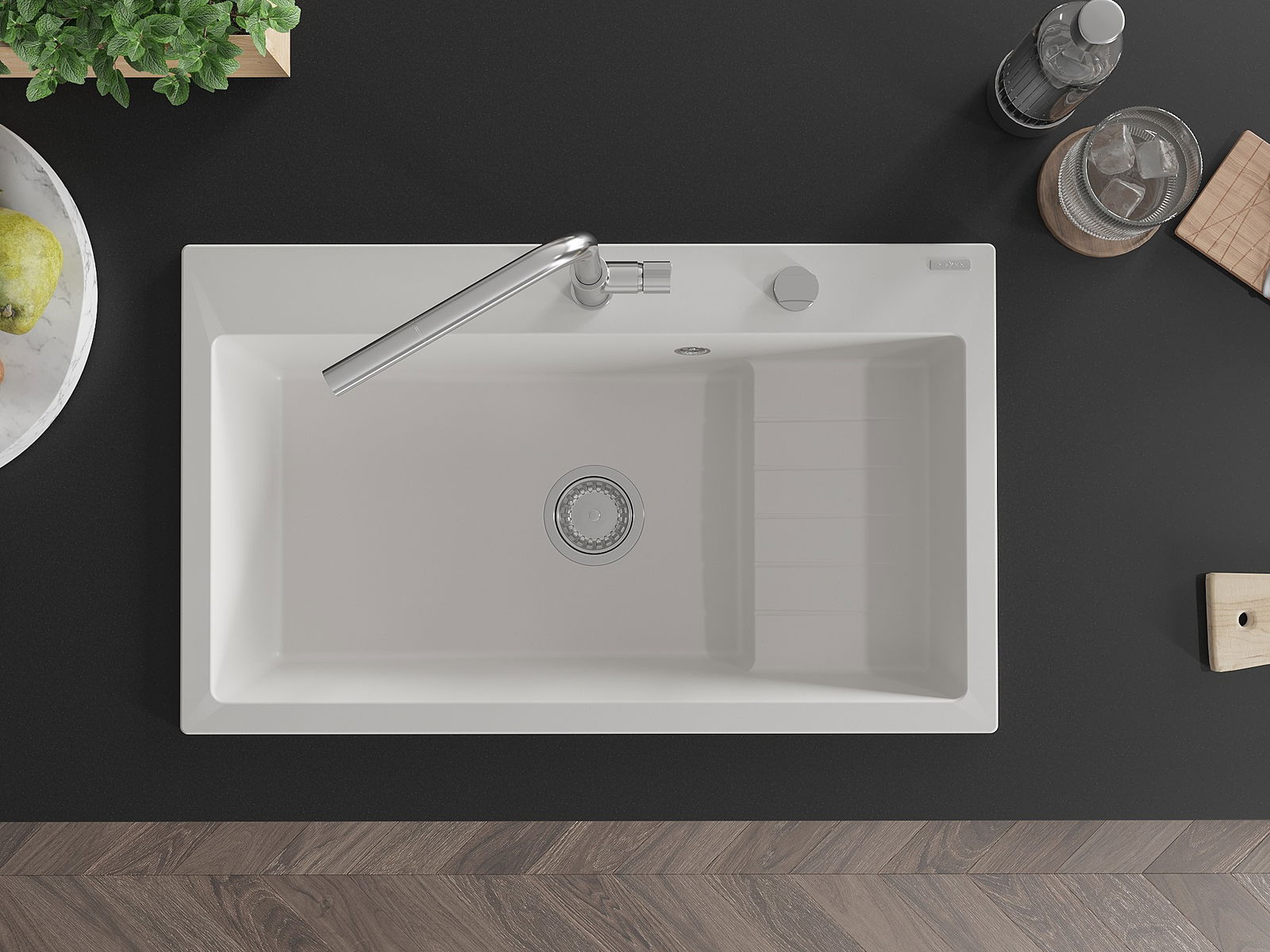 Mexen Omar νεροχύτης γρανίτης 1-διαμερίσματος 800 x 480 mm, λευκός, σιφόνι