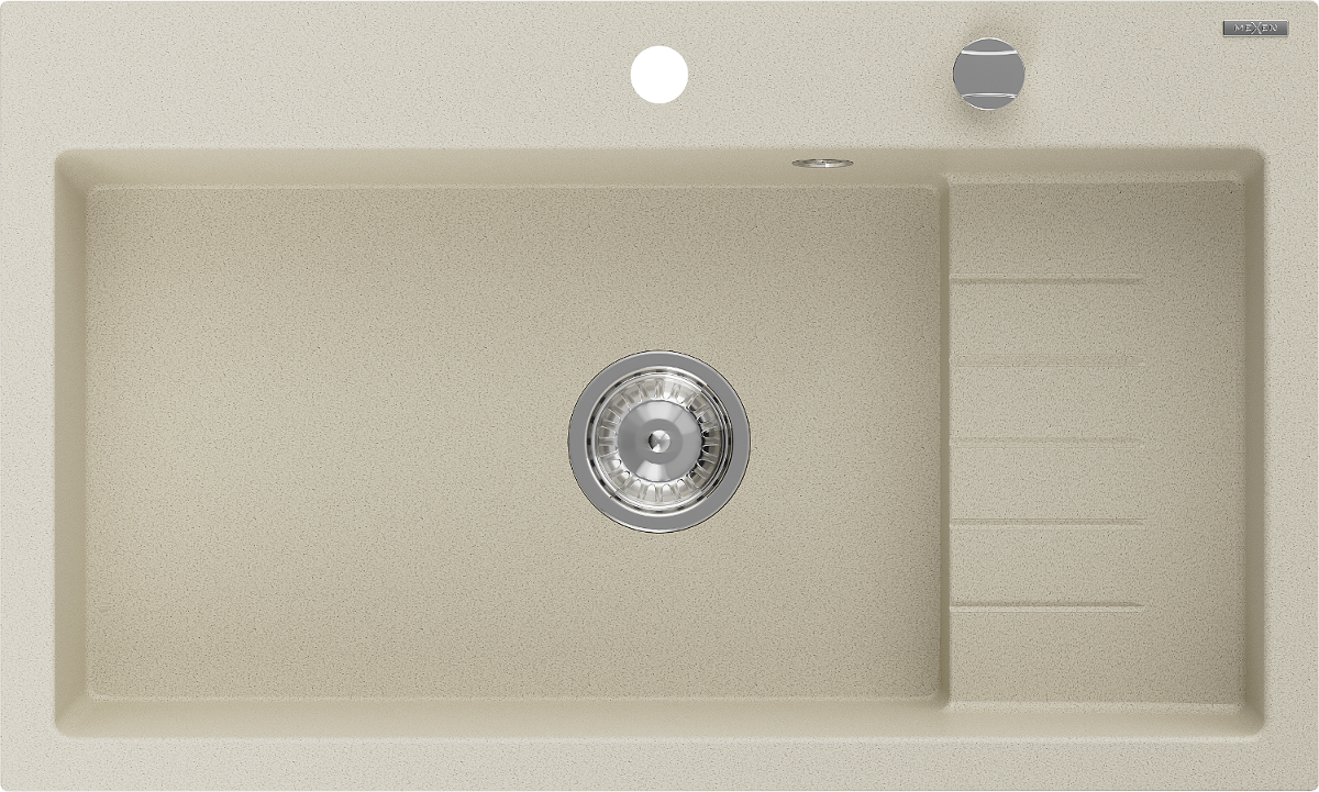 Mexen Omar νεροχύτης γρανίτης, 1 τμήμα, 800 x 480 χιλ., μπεζ, σιφόνι χρώμιο