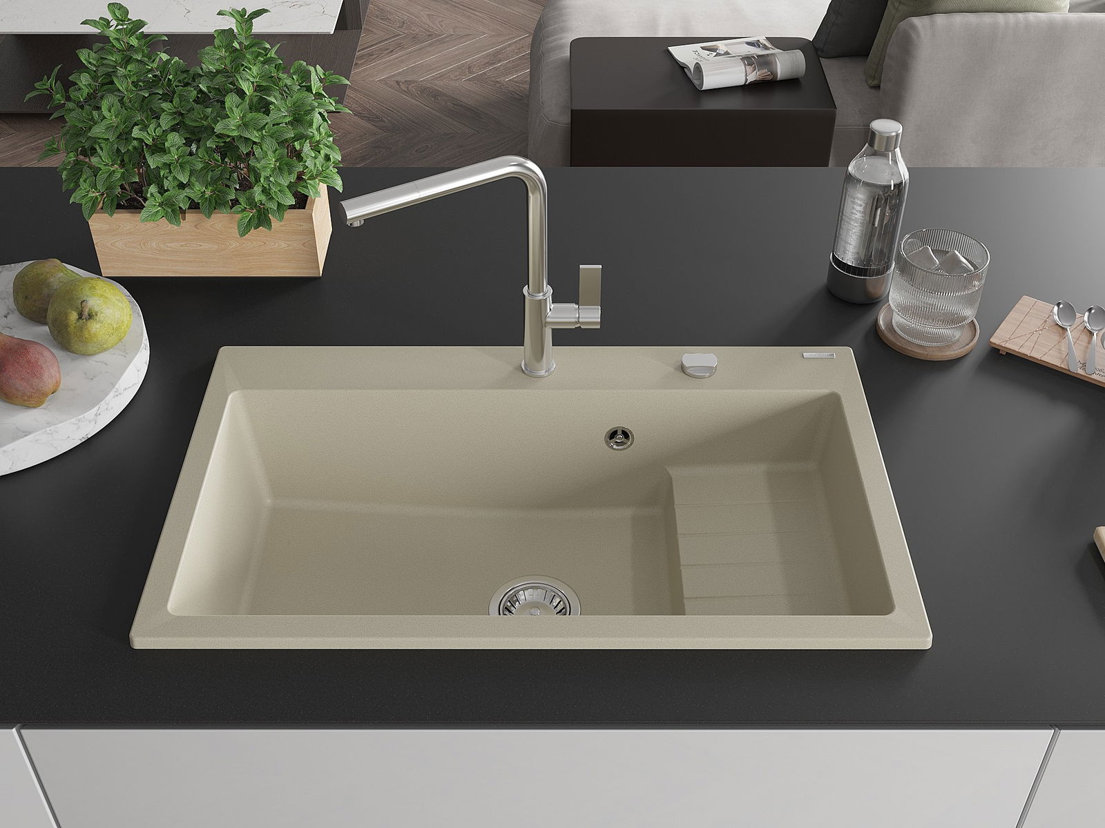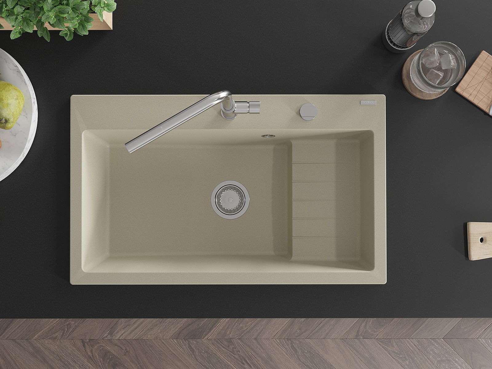 Ο νεροχύτης κατασκευάστηκε από υψηλής ποιότητας γρανίτη. Αποτελεί μια κομψή, και κυρίως πρακτική προσθήκη για κάθε κουζίνα, ανεξάρτητα από το στυλ της. Η υψηλή ποιότητα και η αντοχή του γρανίτη εξασφαλίζουν πολυετή χρήση.