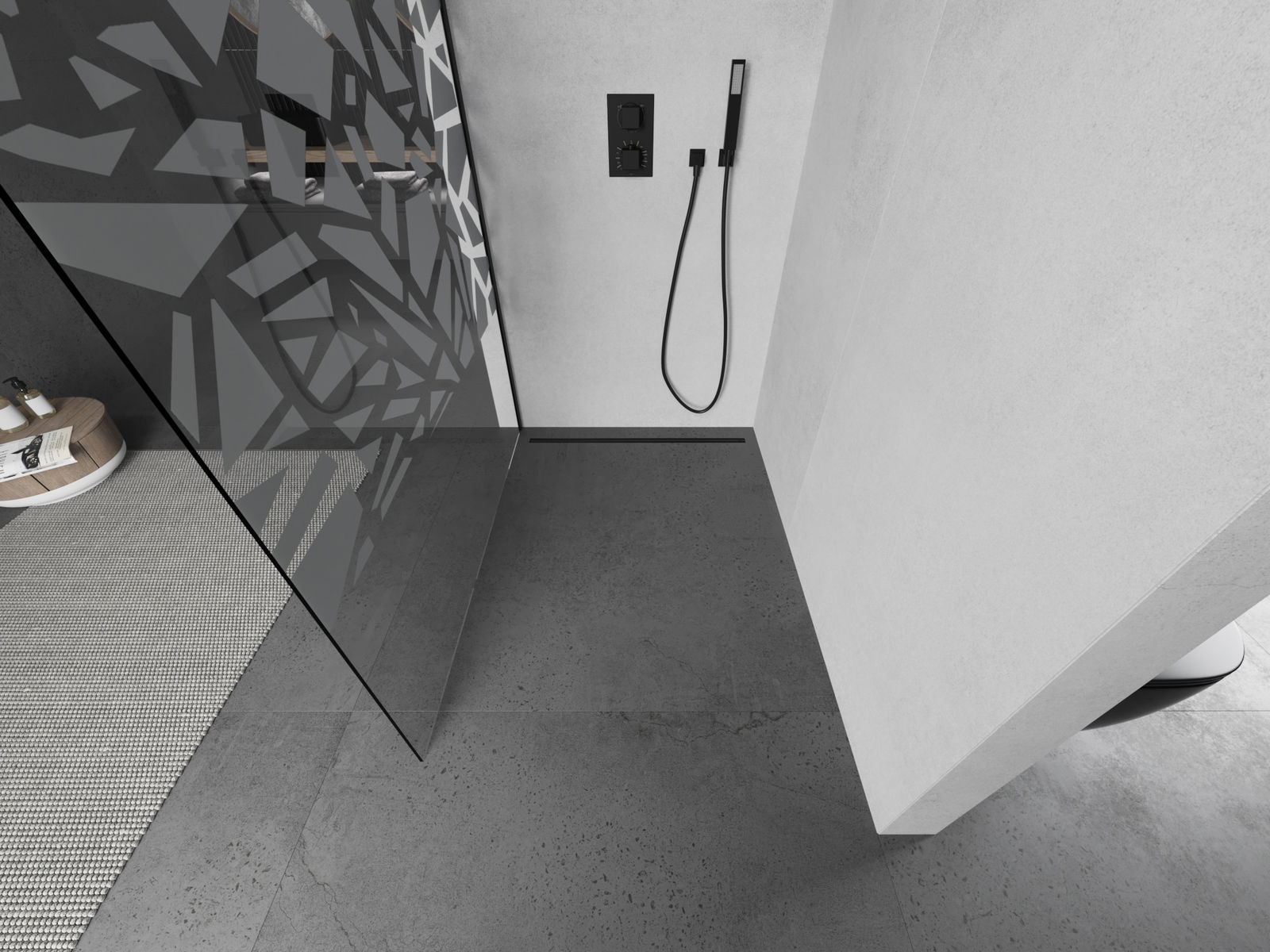 Mexen Kioto Πάνελ ντους Walk-in 90 x 200 cm, λευκό μοτίβο 8 mm, μαύρο - 800-090-101-70-85