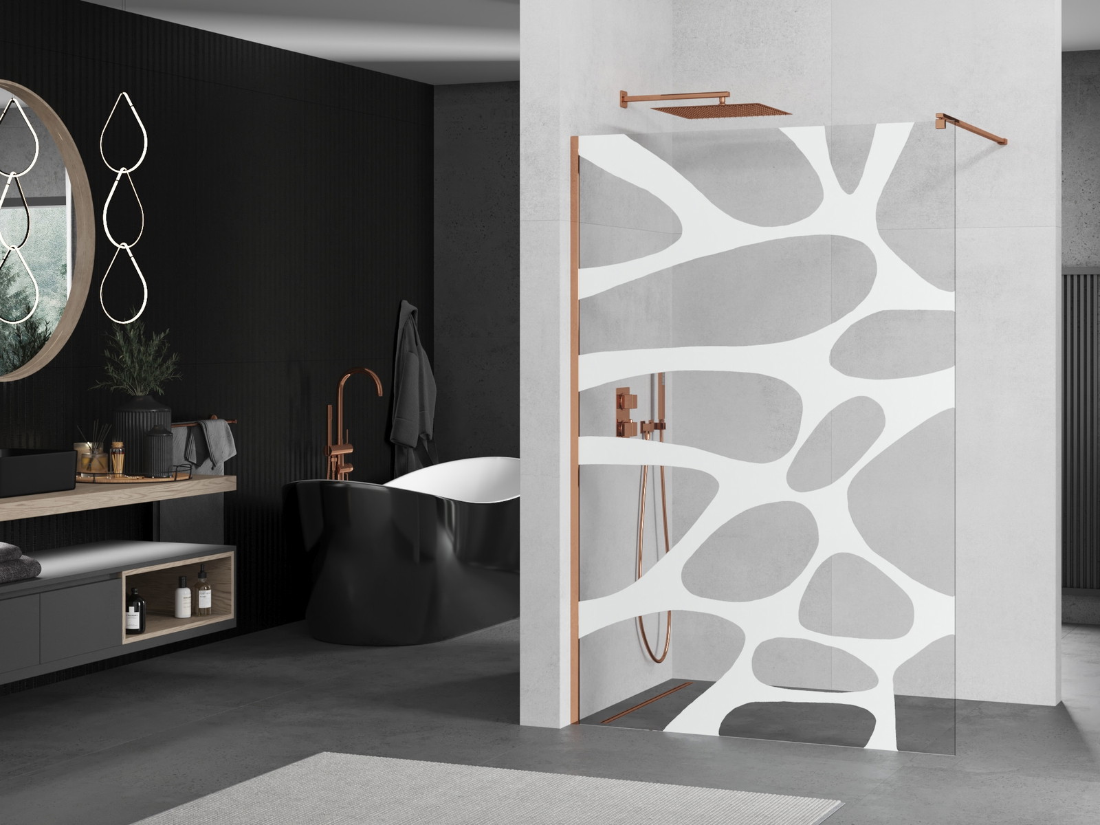 Mexen Kioto Πάνελ ντους Walk-in 110 x 200 εκ., λευκό κύμα 8 χιλ., ροζ χρυσό - 800-110-101-60-97