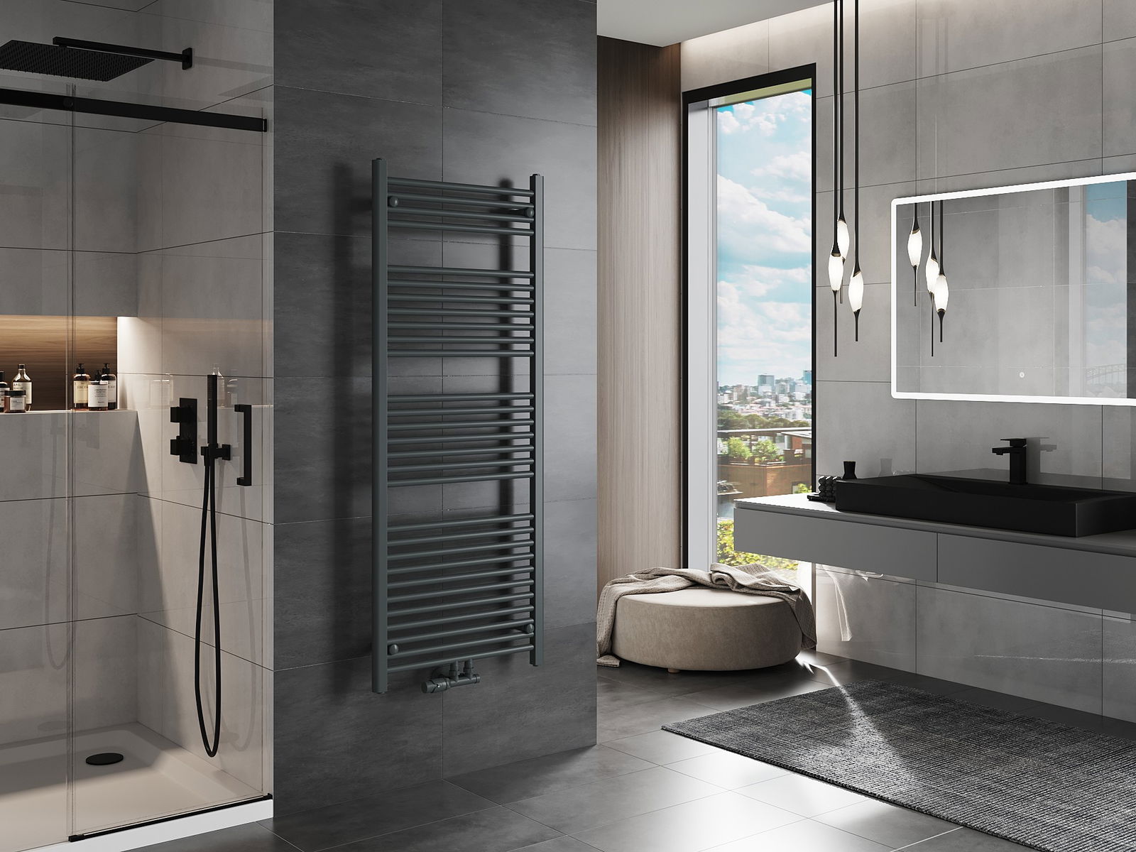 Mexen Mars καλοριφέρ μπάνιου 1500 x 600 mm, 729 W, ανθρακί - W110-1500-600-00-66
