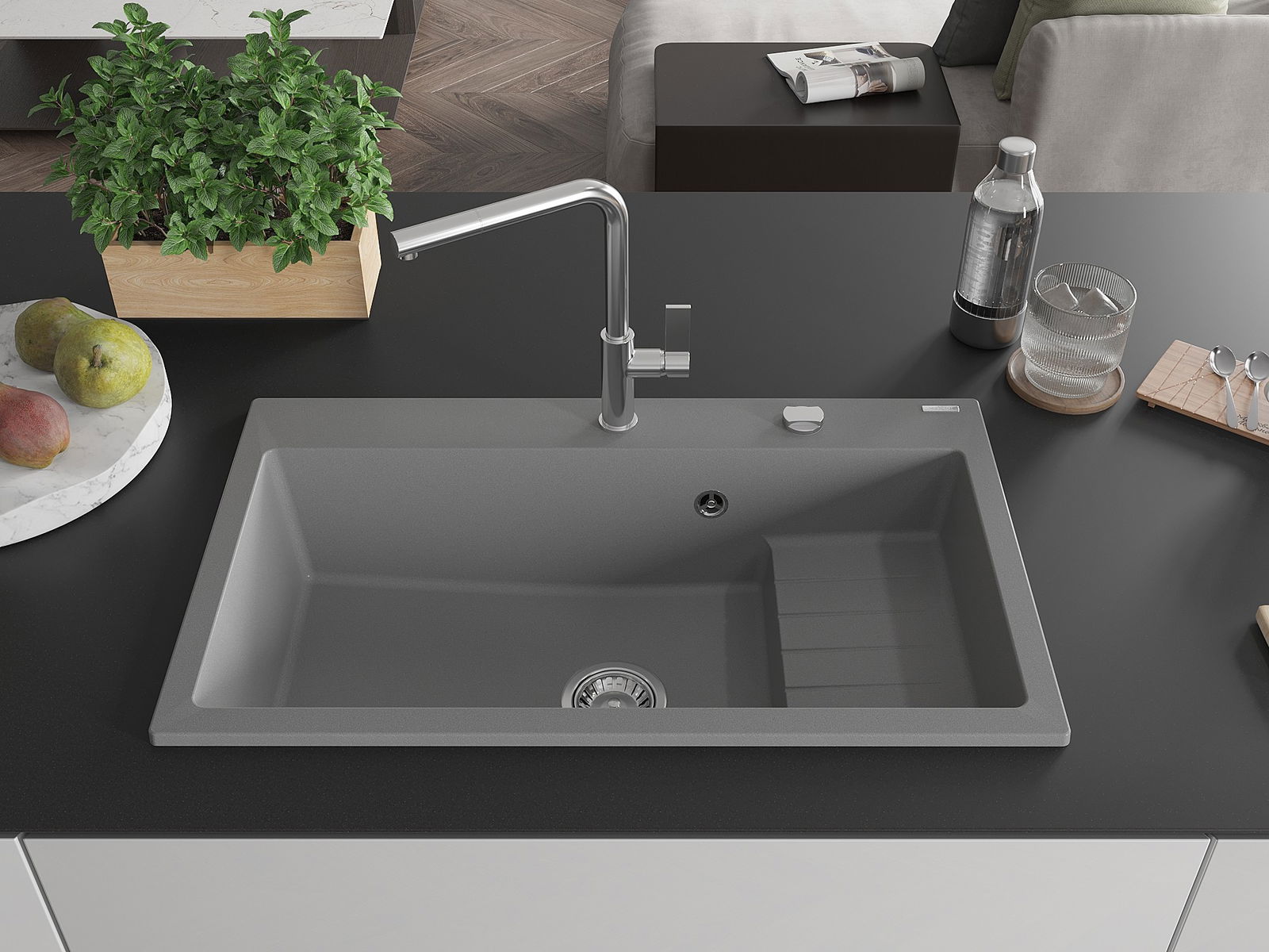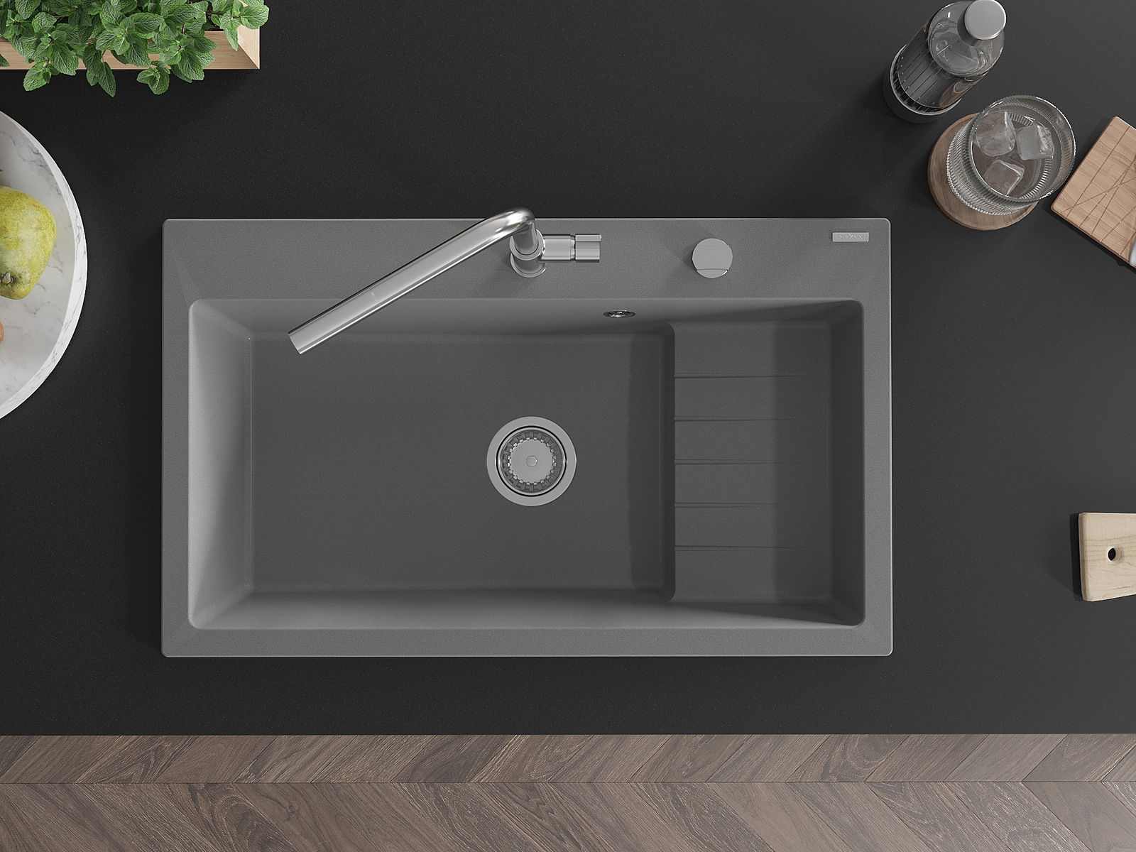Ο νεροχύτης κατασκευάστηκε από υψηλής ποιότητας γρανίτη. Αποτελεί μια κομψή, και κυρίως πρακτική προσθήκη για κάθε κουζίνα, ανεξάρτητα από το στυλ της. Η υψηλή ποιότητα και η αντοχή του γρανίτη εξασφαλίζουν πολυετή χρήση.
