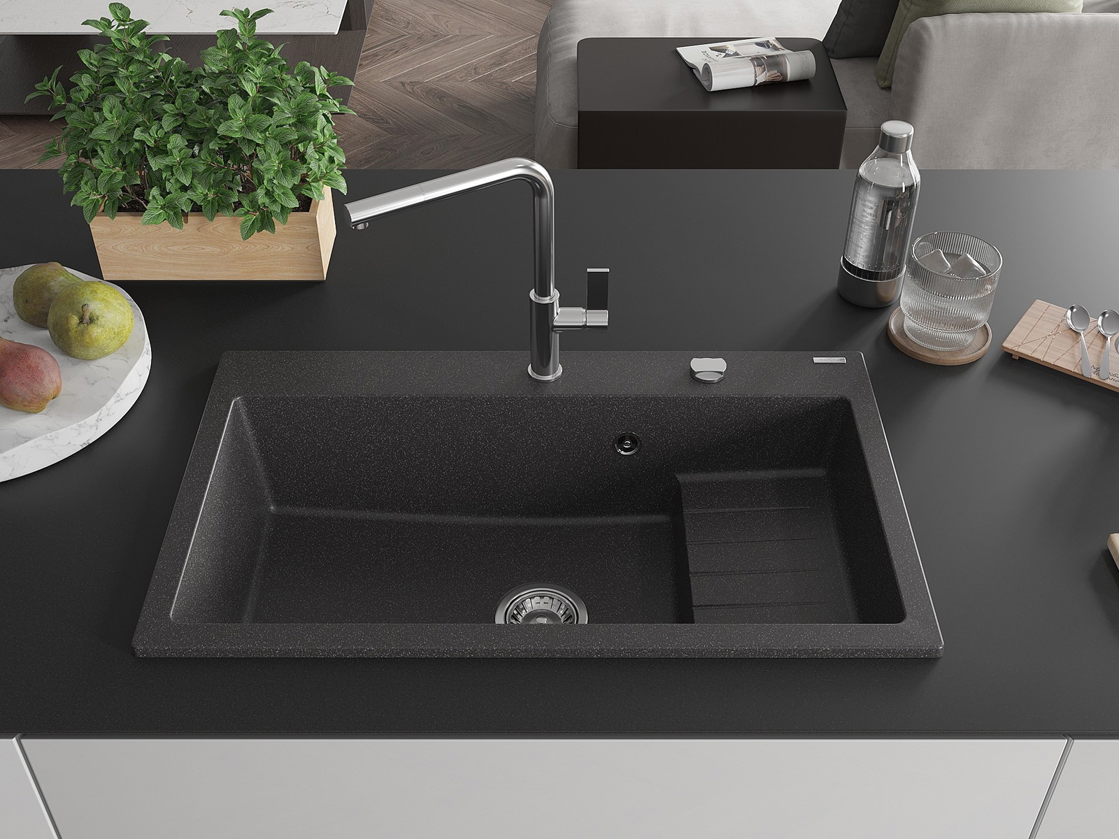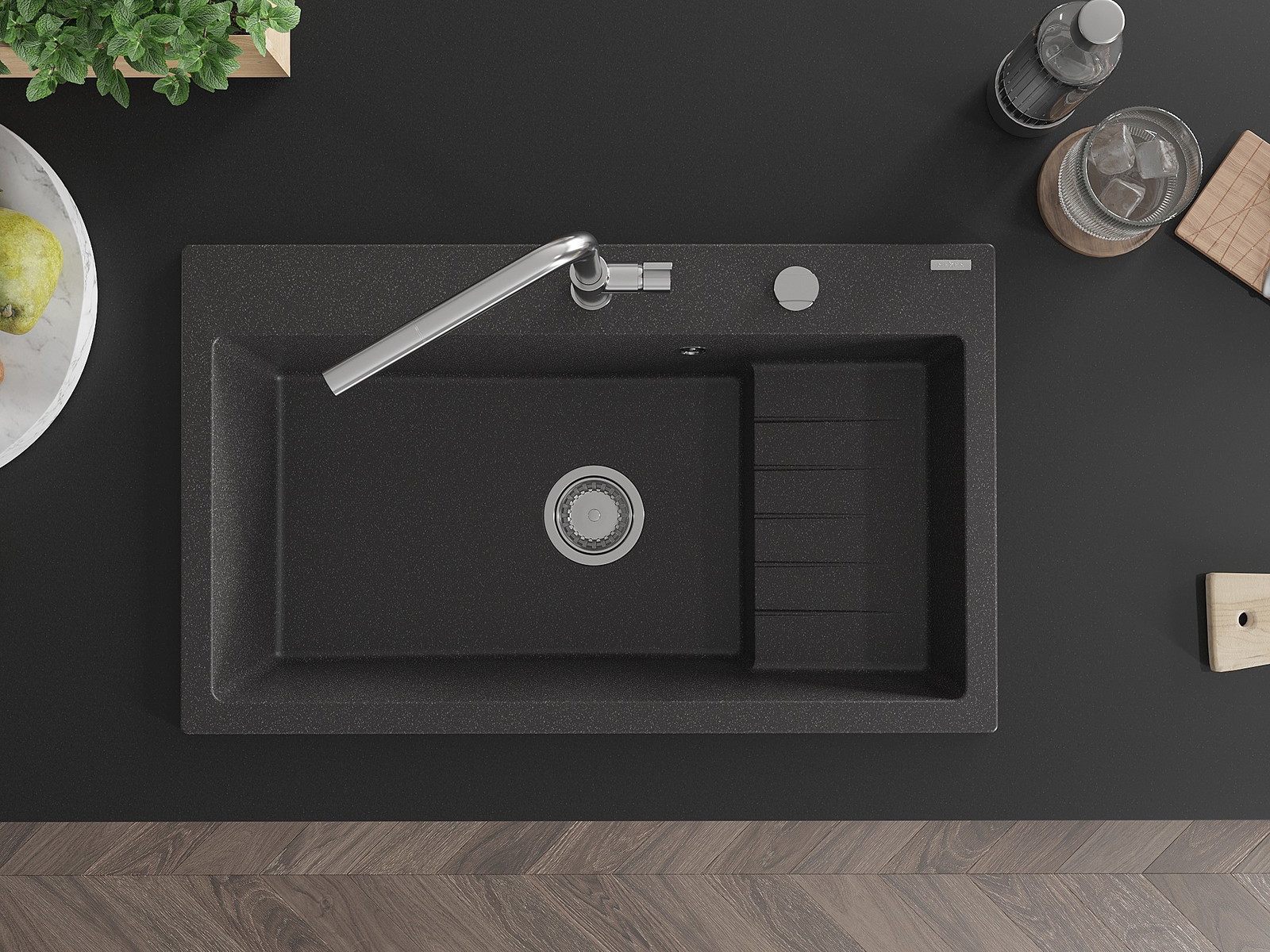 Ο νεροχύτης κατασκευάστηκε από υψηλής ποιότητας γρανίτη. Αποτελεί μια κομψή, και κυρίως πρακτική προσθήκη για κάθε κουζίνα, ανεξάρτητα από το στυλ της. Η υψηλή ποιότητα και η αντοχή του γρανίτη εξασφαλίζουν πολυετή χρήση.