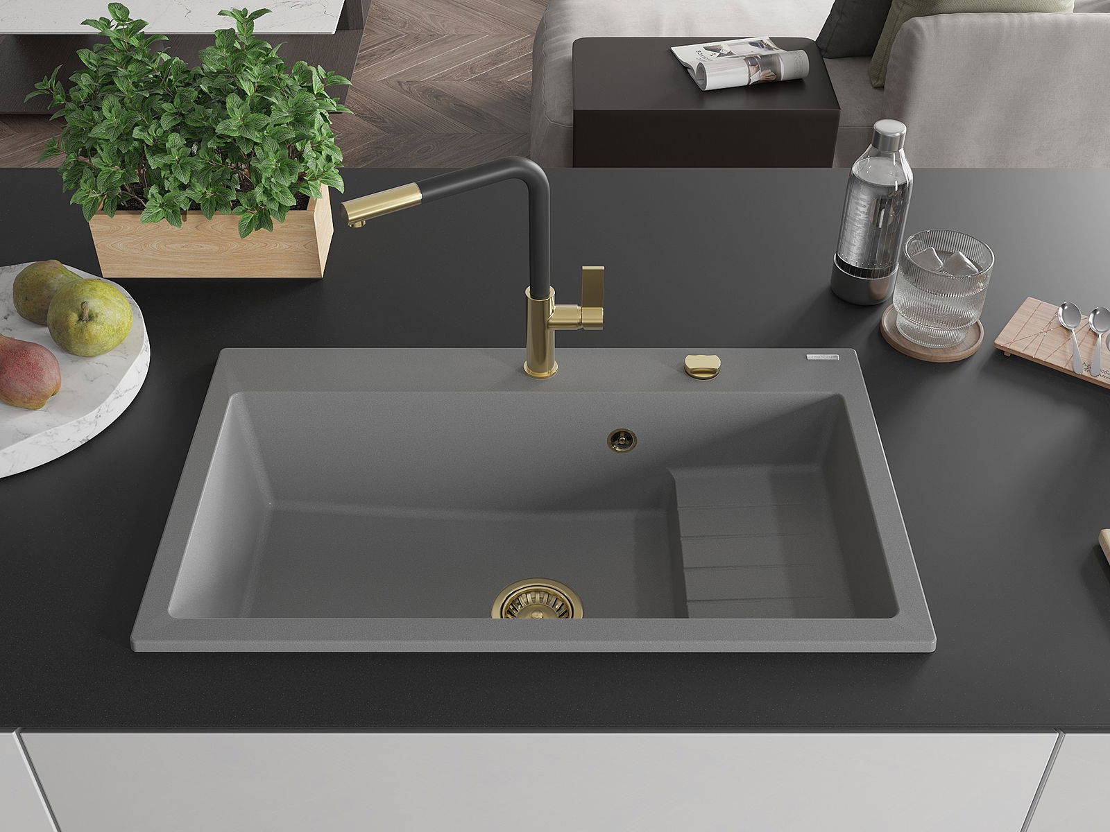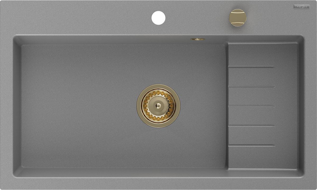 Mexen Omar Νεροχύτης γρανίτης 1 θαλάμου 800 x 480 mm, γκρι, χρυσό σιφόνι