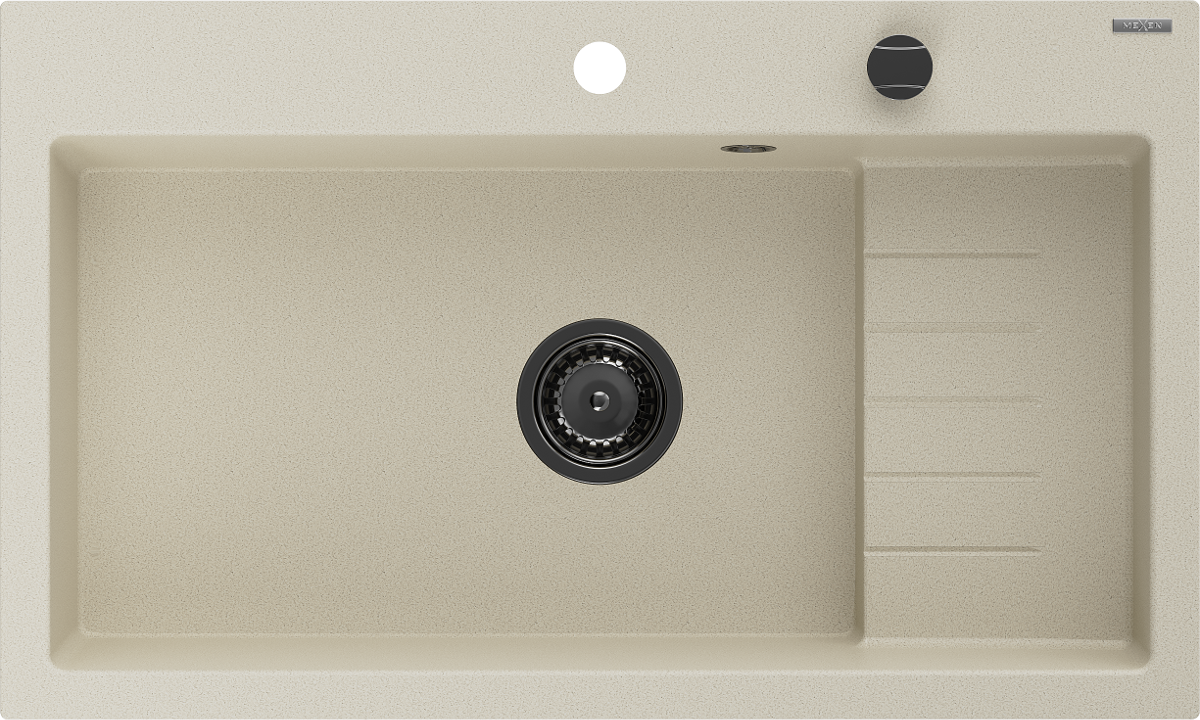 Mexen Omar νεροχύτης από γρανίτη με 1 θάλαμο 800 x 480 mm, μπεζ, μαύρο σιφόνι