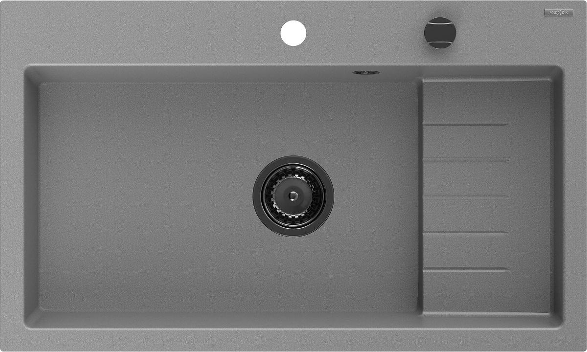 Mexen Omar νεροχύτης γρανίτη μονού θαλάμου 800 x 480 mm, γκρι, σιφόνι μαύρο