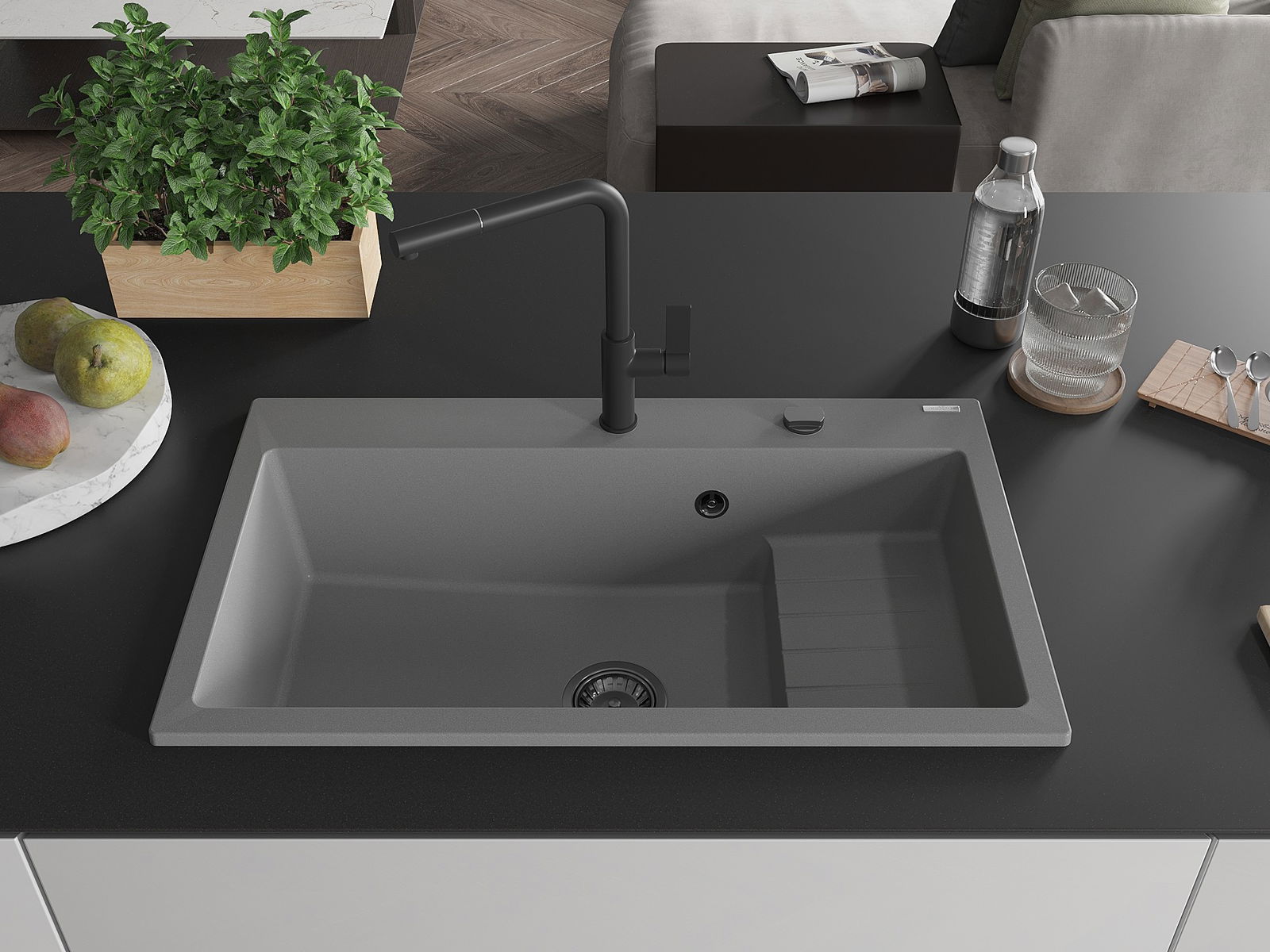 Ο νεροχύτης κατασκευάστηκε από υψηλής ποιότητας γρανίτη. Αποτελεί μια κομψή, και κυρίως πρακτική προσθήκη για κάθε κουζίνα, ανεξάρτητα από το στυλ της. Η υψηλή ποιότητα και η αντοχή του γρανίτη εξασφαλίζουν πολυετή χρήση.