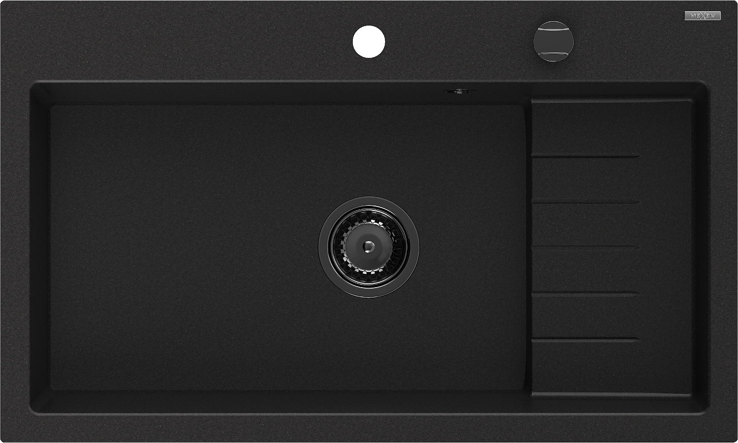 Mexen Omar νεροχύτης γρανιτένιος 1-θάλαμος 800 x 480 mm, μαύρος, μαύρο σιφόνι