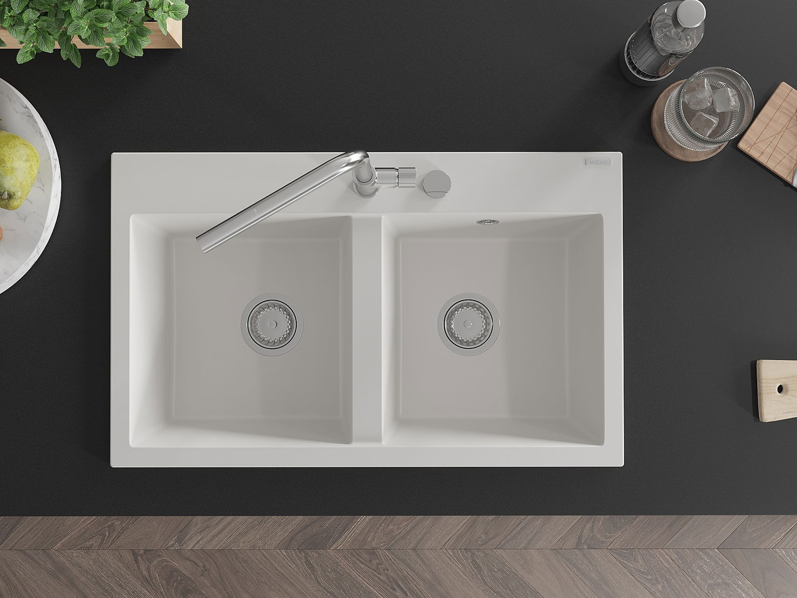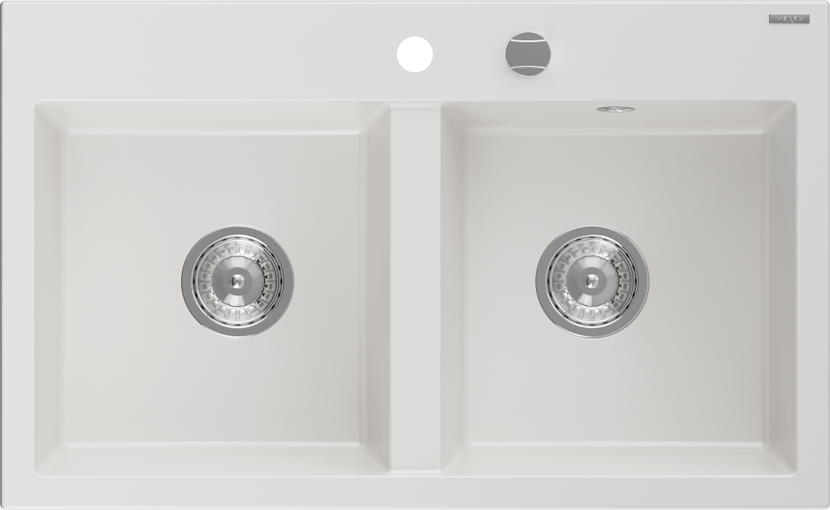 Mexen Hektor νεροχύτης γρανίτη δύο θαλάμων 800 x 480 χλστ, λευκός, σιφόνι