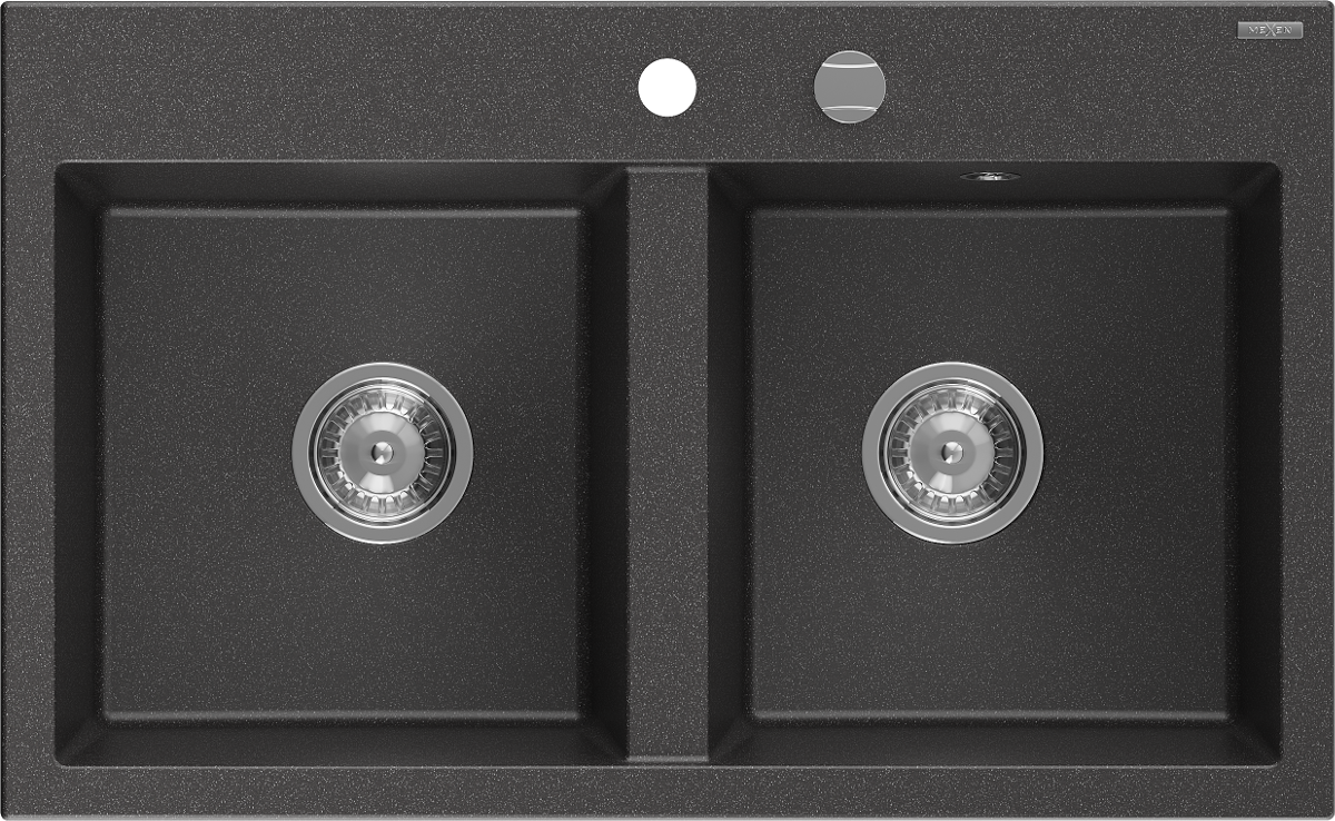 Mexen Hektor Νεροχύτης Γρανίτης 2-Θαλάμων 800 x 480 mm, Μαύρος Με Κηλίδες, Σιφόνι