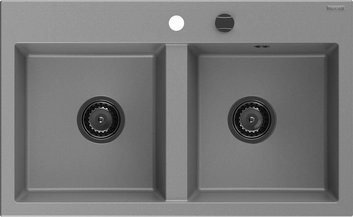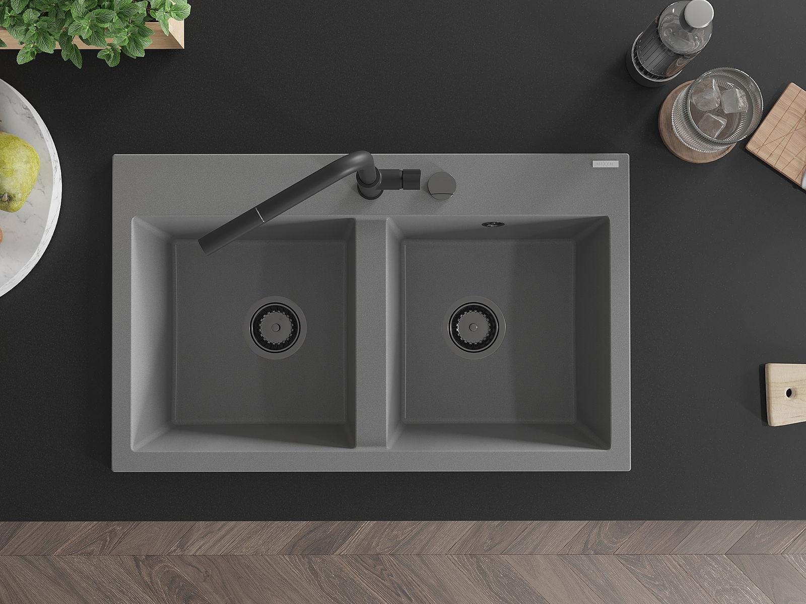 Mexen Hektor νεροχύτης γρανίτης δύο θαλάμων 800 x 480 mm, γκρι, σιφόνι μαύρο