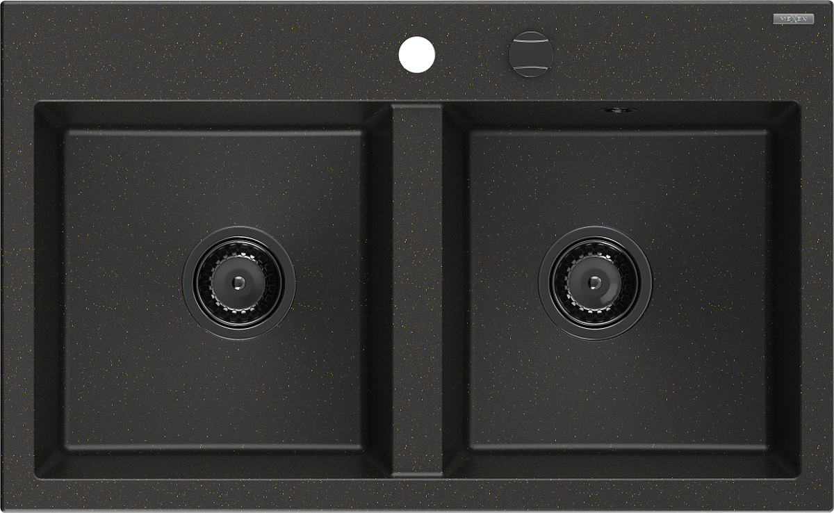 Mexen Hektor νεροχύτης γρανίτης 2-θαλάμων 800 x 480 mm, μαύρο/χρυσό μεταλλικό,