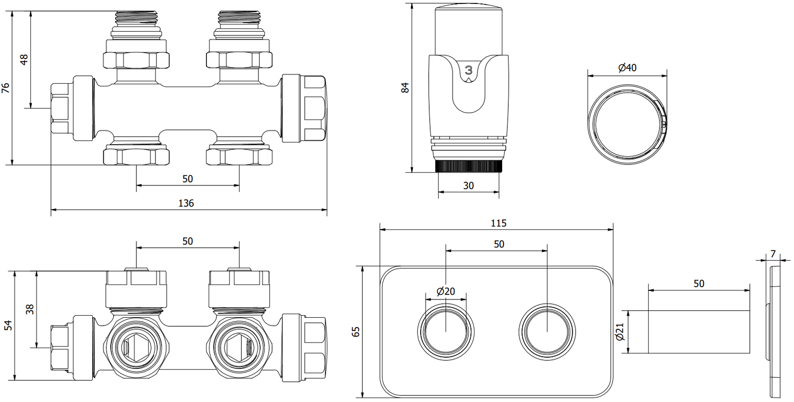 Περιλαμβάνονται επιπλέον συνδέσεις για πολυστρωματικούς σωλήνες 16x2 mm καθώς και συνδέσεις για χάλκινους σωλήνες 15 mm