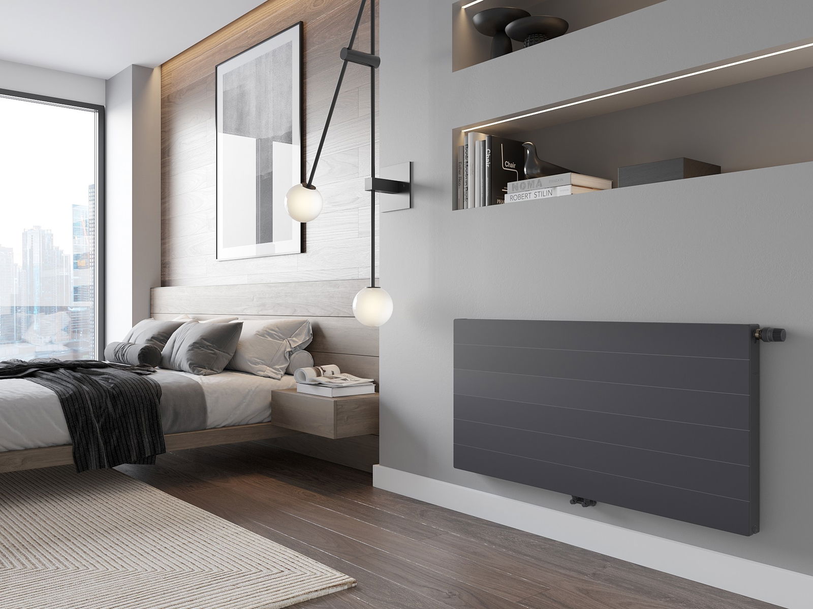 Mexen CCL11 Επίπεδος καλοριφέρ 600 x 1600 mm, κεντρική κάτω σύνδεση, 1253 W, ανθρακί