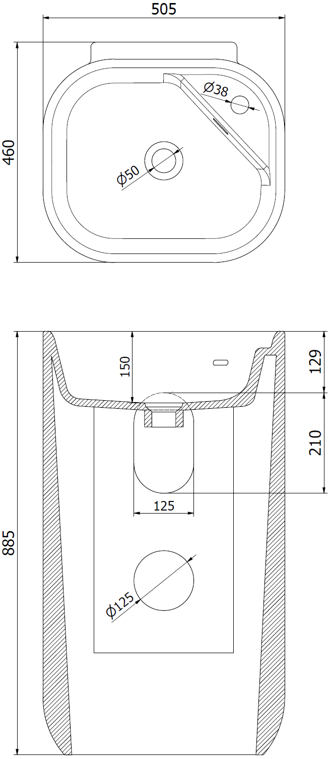 Η οπή υπερχείλισης ονομάζεται "οπή ασφαλείας". Από αυτήν διαφεύγει η περίσσεια νερού, αποτρέποντας την υπερχείλιση έξω από το χείλος του προϊόντος, όταν είναι κλειστή η κάτω αποχέτευση. Πρόκειται για μια πολύ ασφαλή και πρακτική λύση.