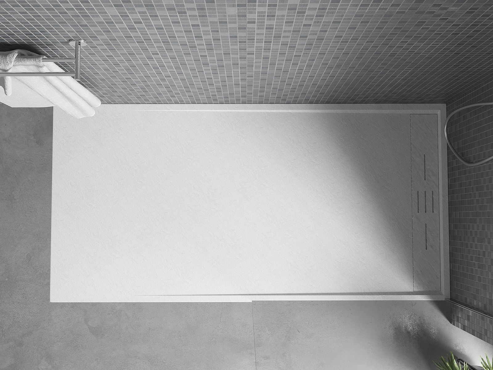 Η επιφάνεια της ντουζιέρας με τη δομή της θυμίζει πέτρα. Αποτελεί έναν εξαιρετικό συνδυασμό φυσικής εμφάνισης με σύγχρονη εσωτερική διαρρύθμιση. Προσθέτει χαρακτήρα, υπογραμμίζει την αισθητική και την κομψότητα της διακόσμησης του μπάνιου και εντυπωσιάζει με τη μορφή της.
