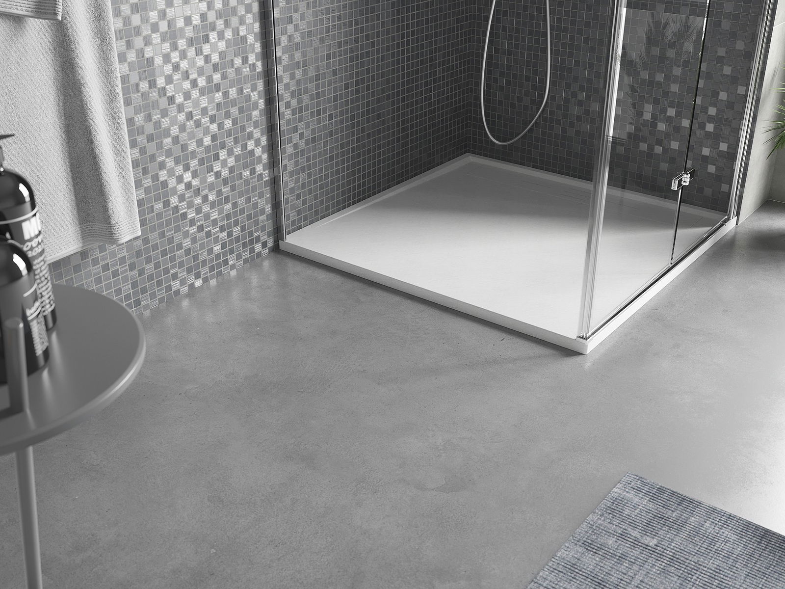 Η επιφάνεια της ντουζιέρας με τη δομή της θυμίζει πέτρα. Αποτελεί έναν εξαιρετικό συνδυασμό φυσικής εμφάνισης με σύγχρονη εσωτερική διαρρύθμιση. Προσθέτει χαρακτήρα, υπογραμμίζει την αισθητική και την κομψότητα της διακόσμησης του μπάνιου και εντυπωσιάζει με τη μορφή της.