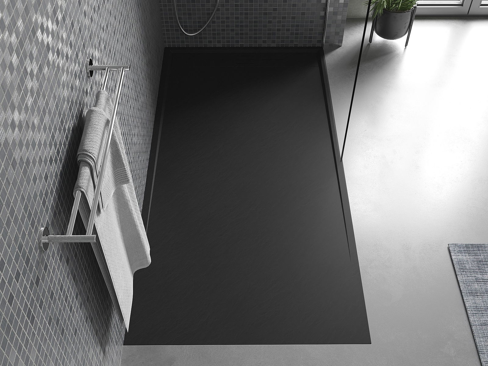 Η επιφάνεια της ντουζιέρας με τη δομή της θυμίζει πέτρα. Αποτελεί έναν εξαιρετικό συνδυασμό φυσικής εμφάνισης με σύγχρονη εσωτερική διαρρύθμιση. Προσθέτει χαρακτήρα, υπογραμμίζει την αισθητική και την κομψότητα της διακόσμησης του μπάνιου και εντυπωσιάζει με τη μορφή της.