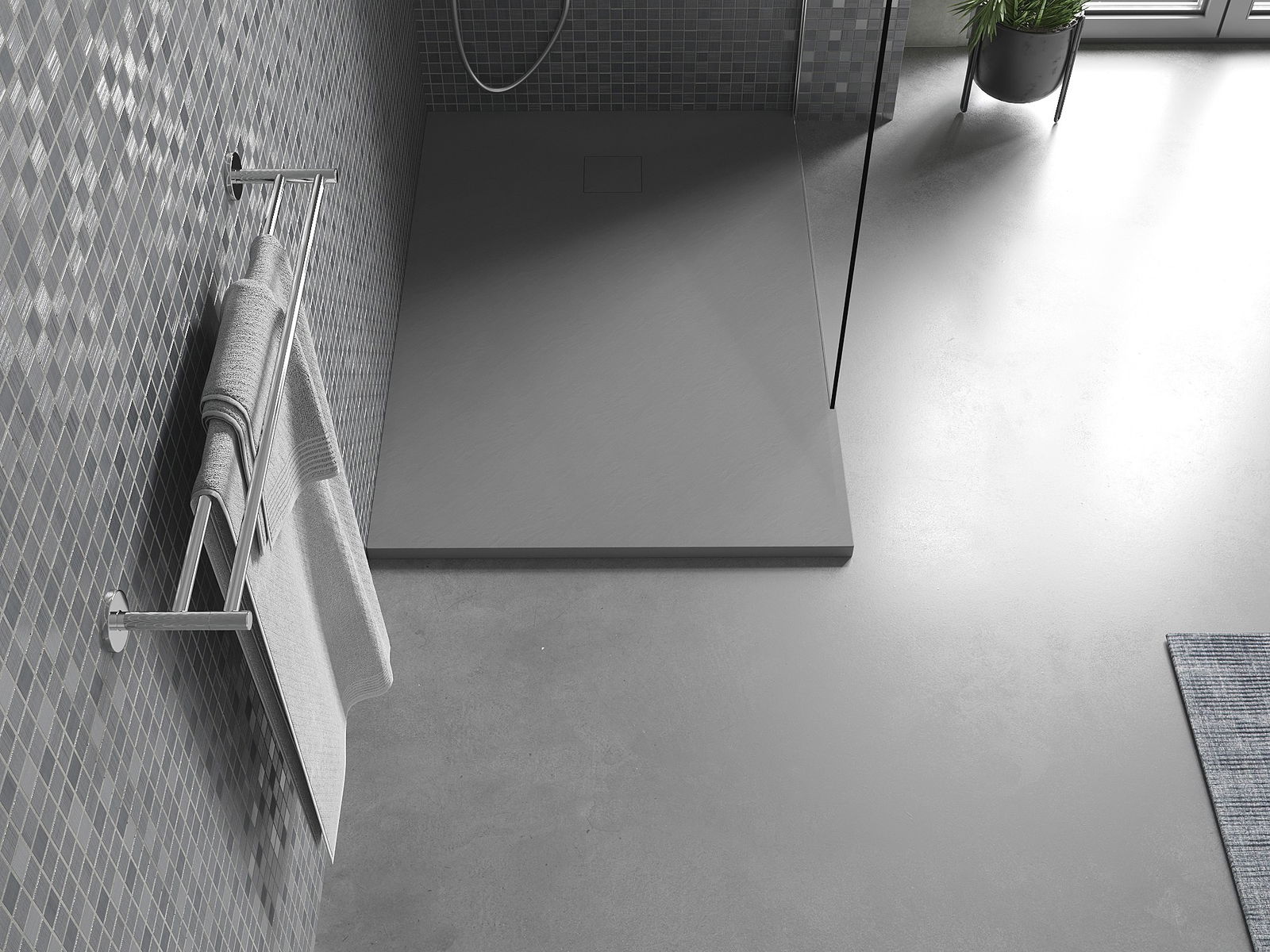 Η επιφάνεια της ντουζιέρας με τη δομή της θυμίζει πέτρα. Αποτελεί έναν εξαιρετικό συνδυασμό φυσικής εμφάνισης με σύγχρονη εσωτερική διαρρύθμιση. Προσθέτει χαρακτήρα, υπογραμμίζει την αισθητική και την κομψότητα της διακόσμησης του μπάνιου και εντυπωσιάζει με τη μορφή της.