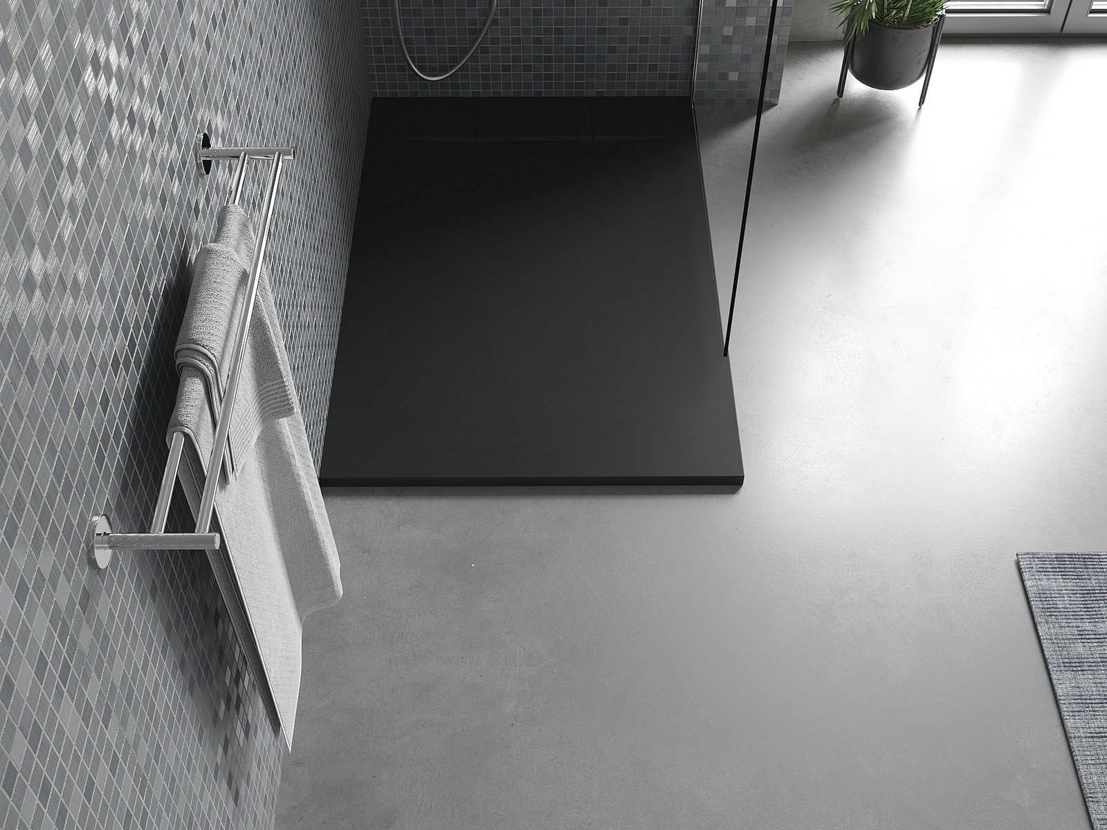 Η επιφάνεια της ντουζιέρας με τη δομή της θυμίζει πέτρα. Αποτελεί έναν εξαιρετικό συνδυασμό φυσικής εμφάνισης με σύγχρονη εσωτερική διαρρύθμιση. Προσθέτει χαρακτήρα, υπογραμμίζει την αισθητική και την κομψότητα της διακόσμησης του μπάνιου και εντυπωσιάζει με τη μορφή της.