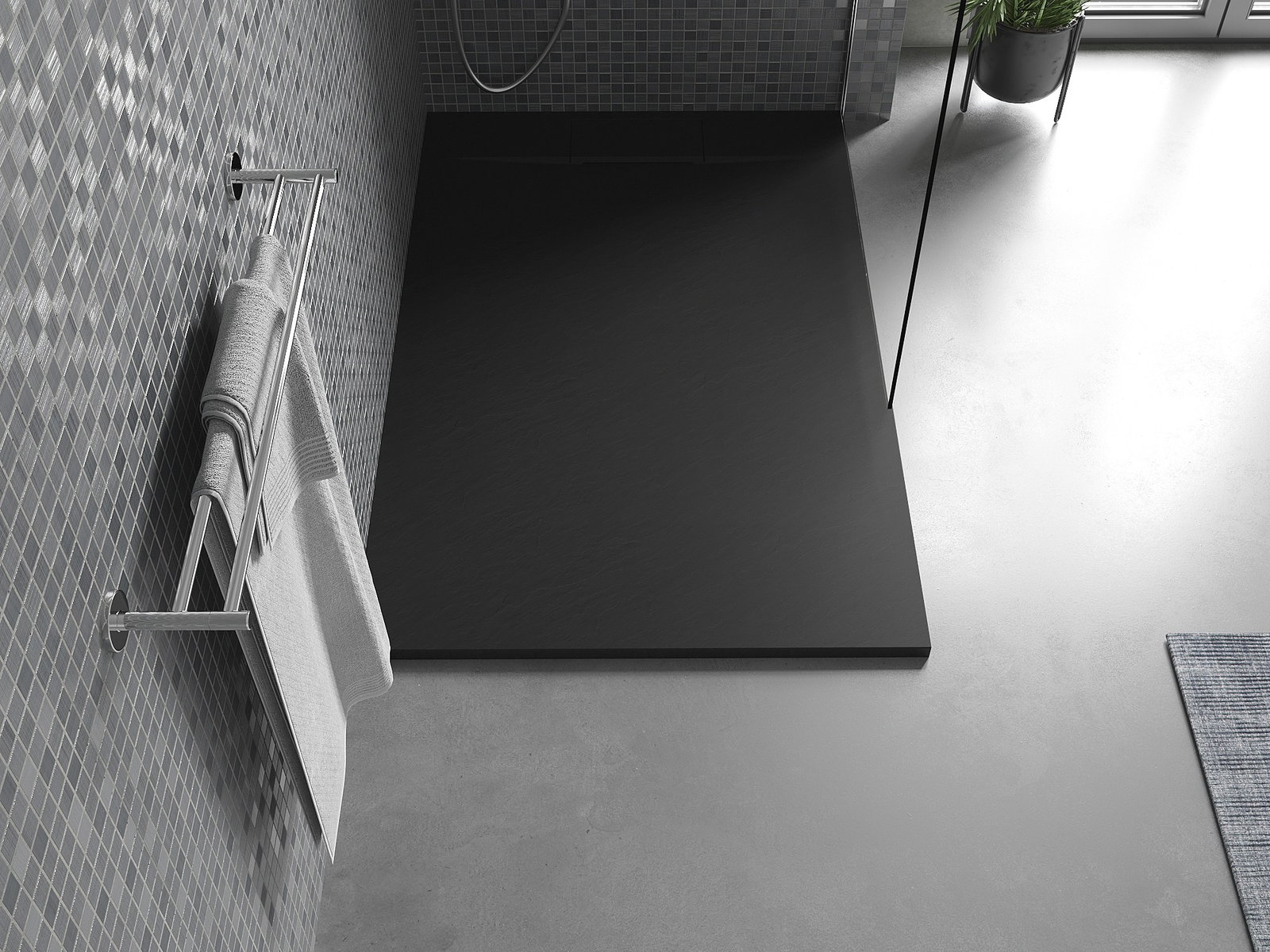 Η επιφάνεια της ντουζιέρας με τη δομή της θυμίζει πέτρα. Αποτελεί έναν εξαιρετικό συνδυασμό φυσικής εμφάνισης με σύγχρονη εσωτερική διαρρύθμιση. Προσθέτει χαρακτήρα, υπογραμμίζει την αισθητική και την κομψότητα της διακόσμησης του μπάνιου και εντυπωσιάζει με τη μορφή της.