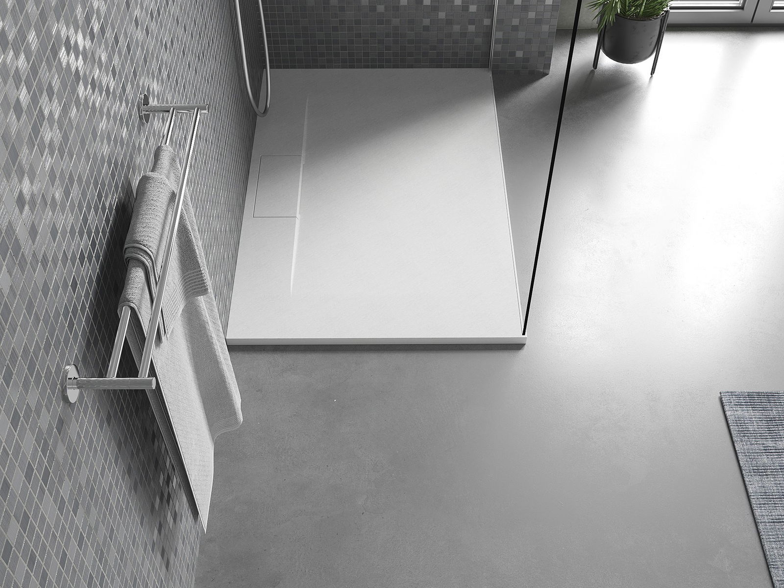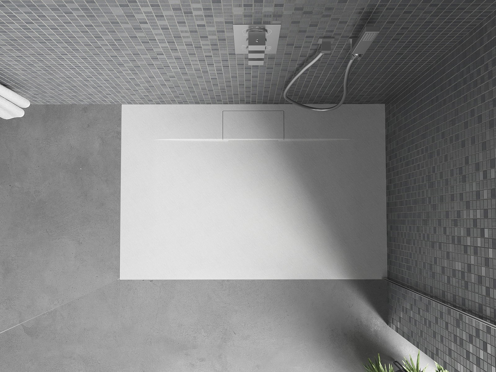 Η επιφάνεια της ντουζιέρας με τη δομή της θυμίζει πέτρα. Αποτελεί έναν εξαιρετικό συνδυασμό φυσικής εμφάνισης με σύγχρονη εσωτερική διαρρύθμιση. Προσθέτει χαρακτήρα, υπογραμμίζει την αισθητική και την κομψότητα της διακόσμησης του μπάνιου και εντυπωσιάζει με τη μορφή της.