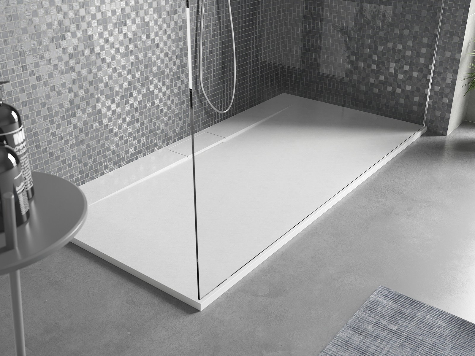 Η επιφάνεια της ντουζιέρας με τη δομή της θυμίζει πέτρα. Αποτελεί έναν εξαιρετικό συνδυασμό φυσικής εμφάνισης με σύγχρονη εσωτερική διαρρύθμιση. Προσθέτει χαρακτήρα, υπογραμμίζει την αισθητική και την κομψότητα της διακόσμησης του μπάνιου και εντυπωσιάζει με τη μορφή της.