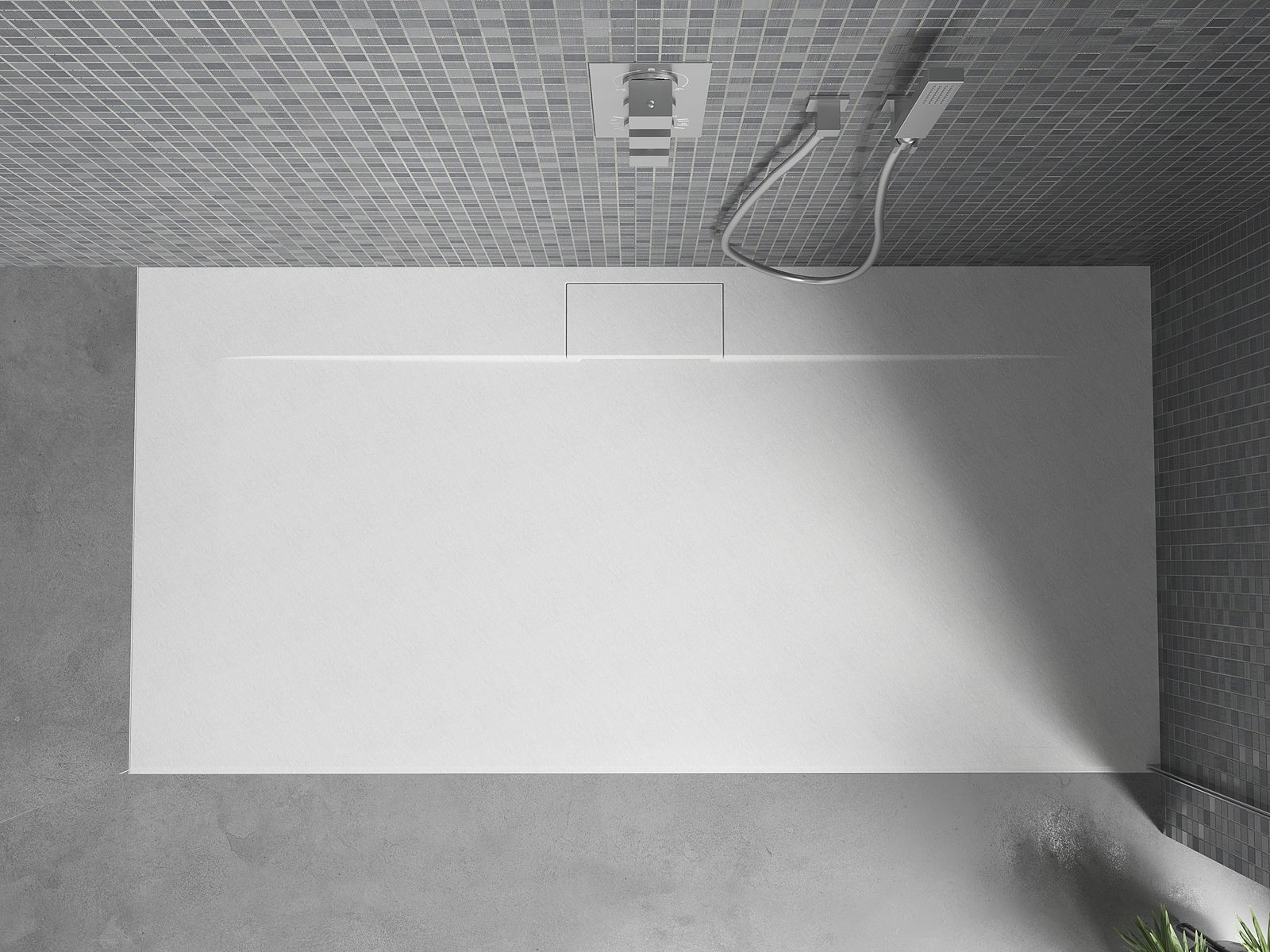 Η επιφάνεια της ντουζιέρας με τη δομή της θυμίζει πέτρα. Αποτελεί έναν εξαιρετικό συνδυασμό φυσικής εμφάνισης με σύγχρονη εσωτερική διαρρύθμιση. Προσθέτει χαρακτήρα, υπογραμμίζει την αισθητική και την κομψότητα της διακόσμησης του μπάνιου και εντυπωσιάζει με τη μορφή της.