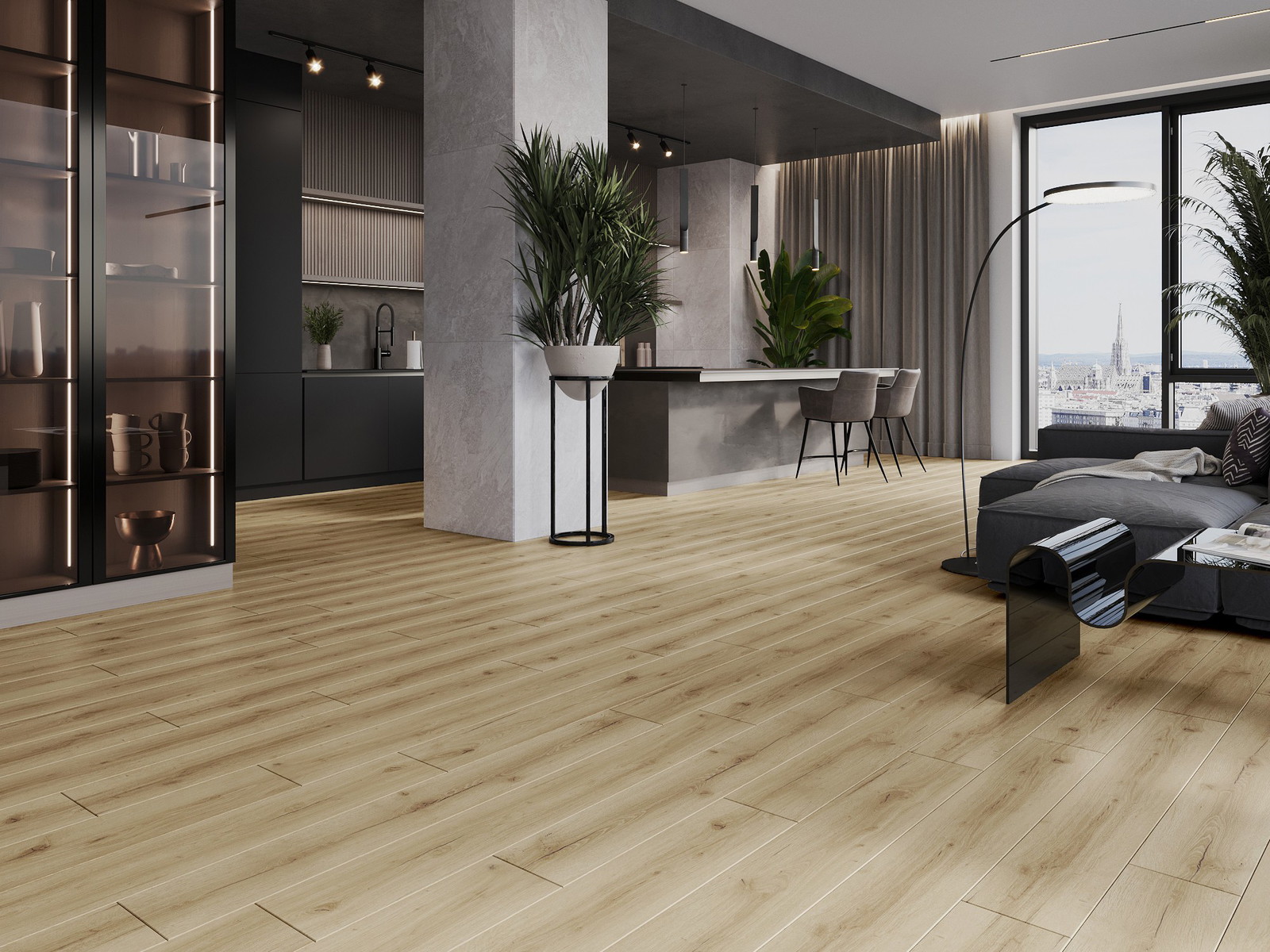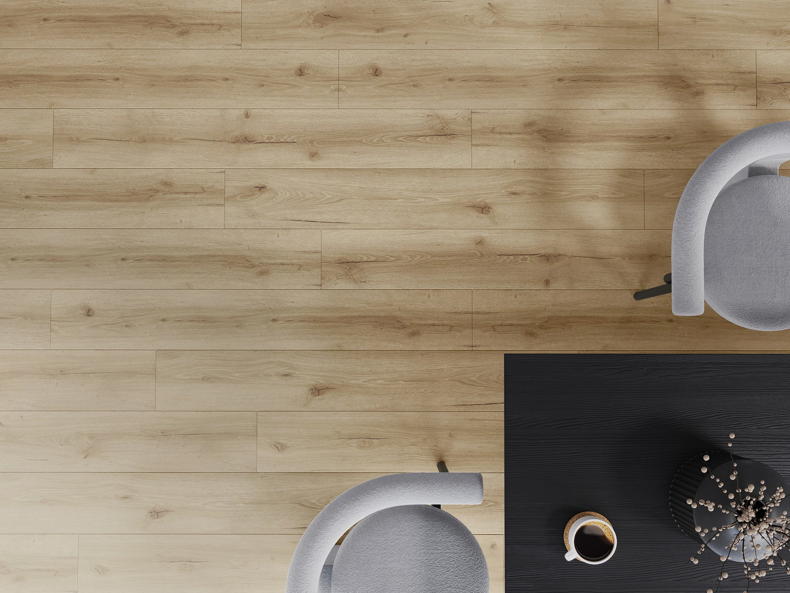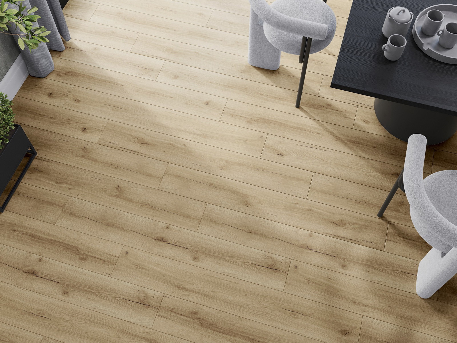 Τα πάνελ διαθέτουν 4-πλευρη φούγκα - κάθε πλευρά έχει φρεζαριστεί με τέτοιο τρόπο ώστε να δημιουργεί σύνδεση σε σχήμα V όταν τοποθετηθεί. Αυτός ο σχεδιασμός προσδίδει στο πάτωμα μια πιο έντονη δομή, προσδίδοντάς του βάθος και αισθητικό χαρακτήρα. Αυτό το αποτέλεσμα είναι ιδιαίτερα εκτιμημένο στις σύγχρονες διαμορφώσεις, όπου οι λεπτομέρειες υπογραμμίζουν την ξεχωριστή εμφάνιση του εσωτερικού χώρου.
