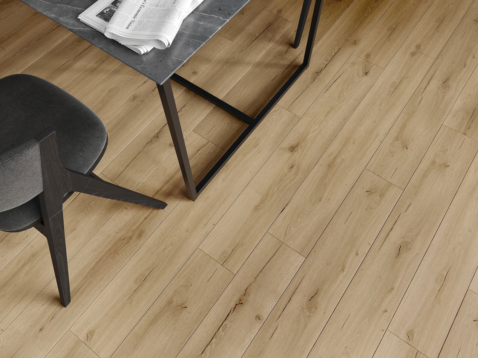 Τα πάνελ διαθέτουν αρμό σε σχήμα V σε όλες τις πλευρές - κάθε πλευρά έχει ανοιχτεί με τέτοιο τρόπο ώστε, όταν τοποθετηθούν, να δημιουργείται σύνδεση σε σχήμα γράμματος V. Αυτός ο σχεδιασμός κάνει το πάτωμα να αποκτά εμφανέστερη δομή, προσδίδοντάς του βάθος και αισθητικό χαρακτήρα. Αυτό το αποτέλεσμα εκτιμάται ιδιαίτερα σε σύγχρονες διακοσμήσεις, όπου οι λεπτομέρειες αναδεικνύουν την ξεχωριστή εμφάνιση του εσωτερικού.