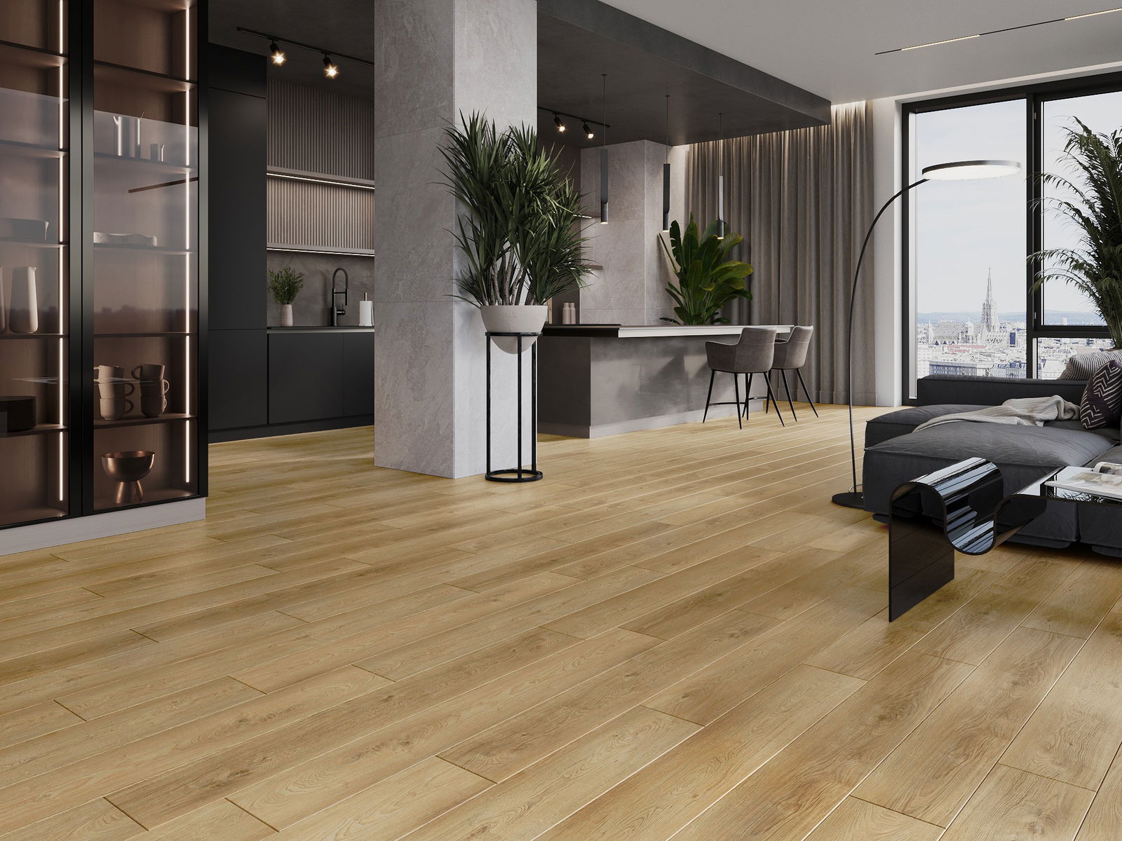 Τα πάνελ διαθέτουν αρμό σε σχήμα V σε όλες τις πλευρές - κάθε πλευρά έχει ανοιχτεί με τέτοιο τρόπο ώστε, όταν τοποθετηθούν, να δημιουργείται σύνδεση σε σχήμα γράμματος V. Αυτός ο σχεδιασμός κάνει το πάτωμα να αποκτά εμφανέστερη δομή, προσδίδοντάς του βάθος και αισθητικό χαρακτήρα. Αυτό το αποτέλεσμα εκτιμάται ιδιαίτερα σε σύγχρονες διακοσμήσεις, όπου οι λεπτομέρειες αναδεικνύουν την ξεχωριστή εμφάνιση του εσωτερικού.