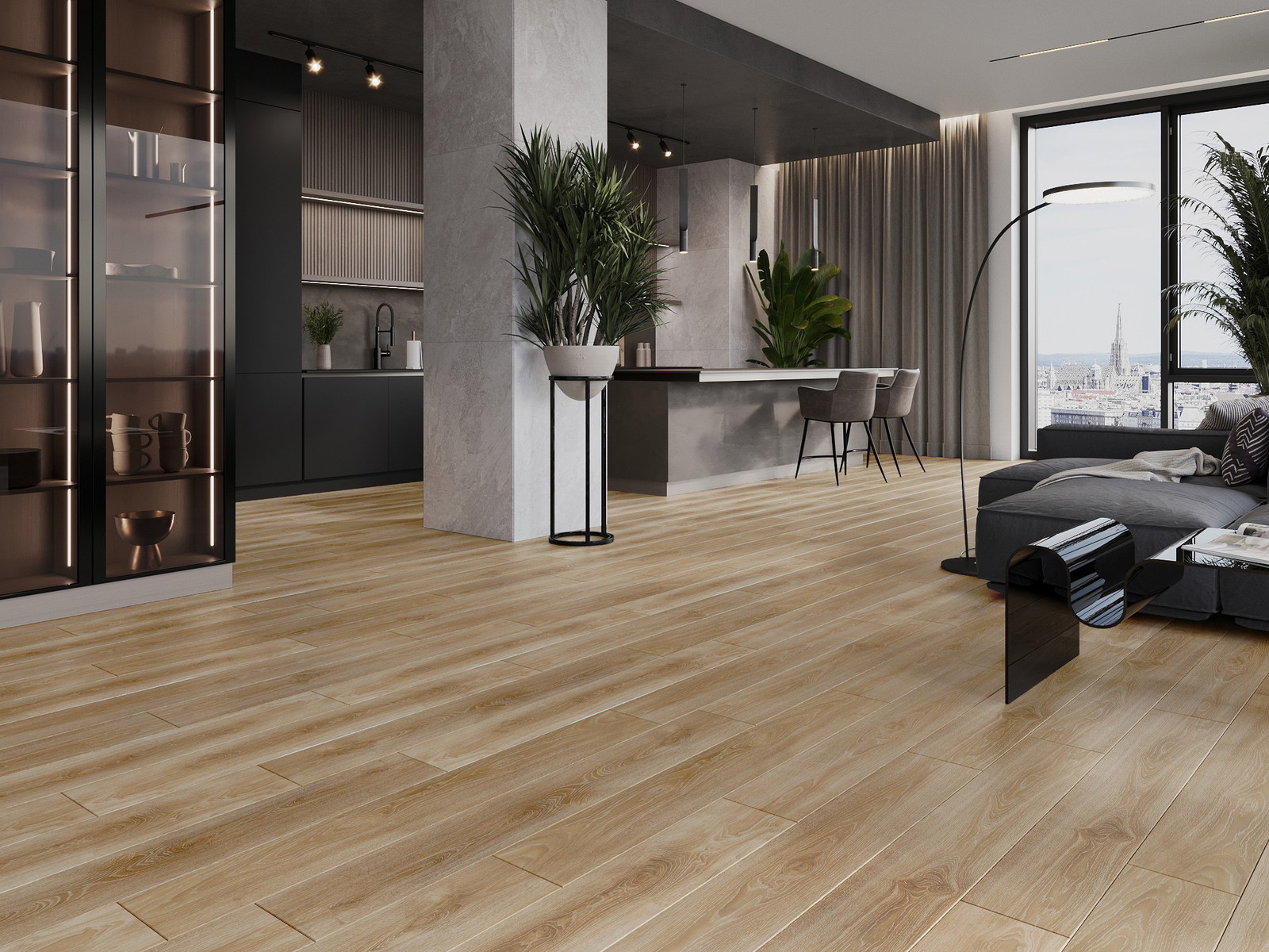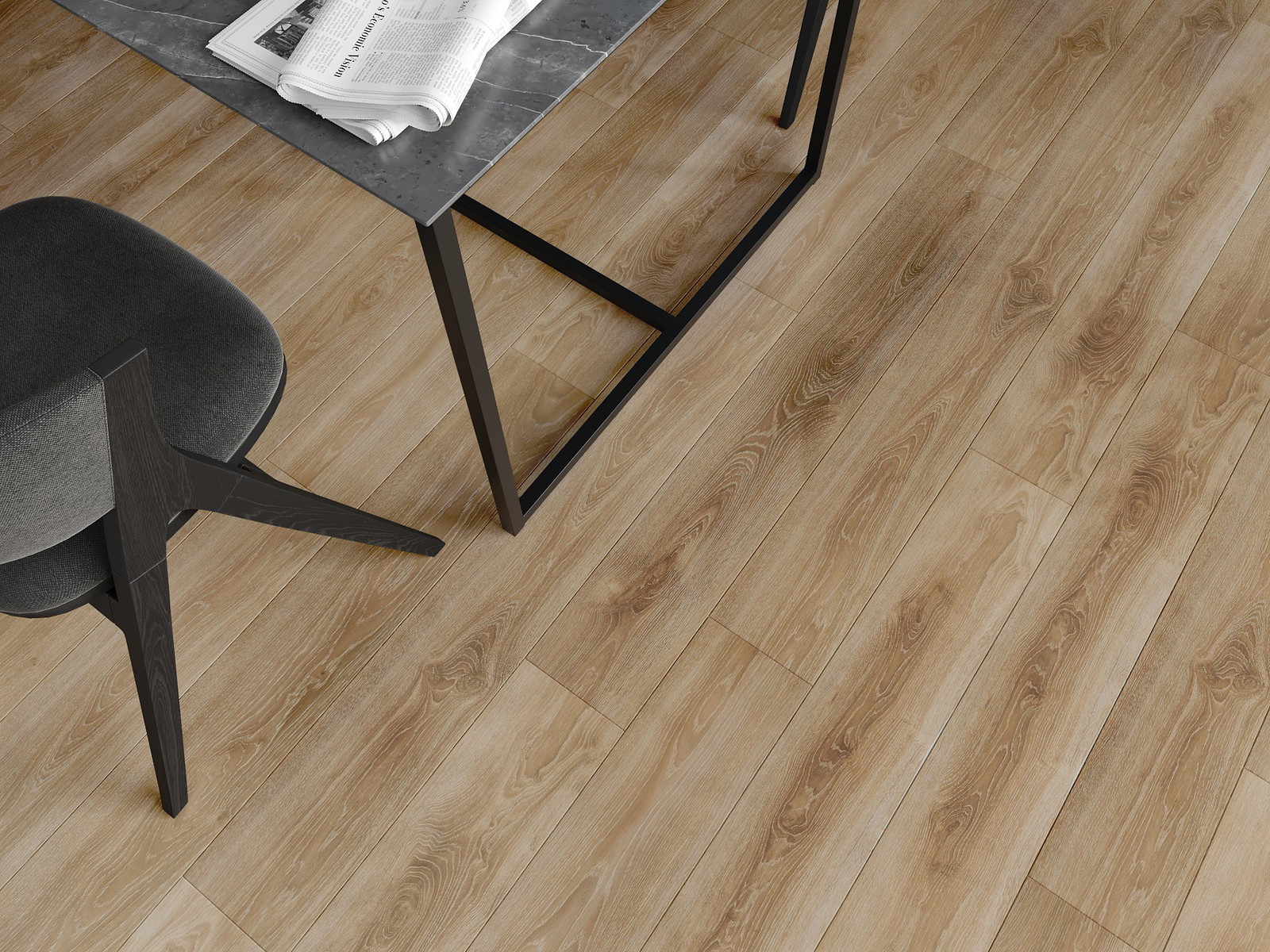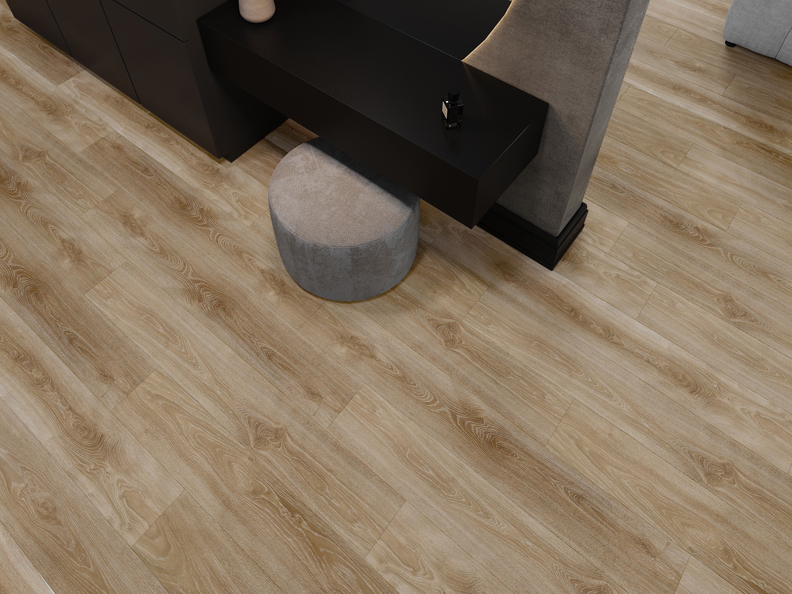Τα πάνελ διαθέτουν 4-πλευρη φούγκα - κάθε πλευρά έχει φρεζαριστεί με τέτοιο τρόπο ώστε να δημιουργεί σύνδεση σε σχήμα V όταν τοποθετηθεί. Αυτός ο σχεδιασμός προσδίδει στο πάτωμα μια πιο έντονη δομή, προσδίδοντάς του βάθος και αισθητικό χαρακτήρα. Αυτό το αποτέλεσμα είναι ιδιαίτερα εκτιμημένο στις σύγχρονες διαμορφώσεις, όπου οι λεπτομέρειες υπογραμμίζουν την ξεχωριστή εμφάνιση του εσωτερικού χώρου.