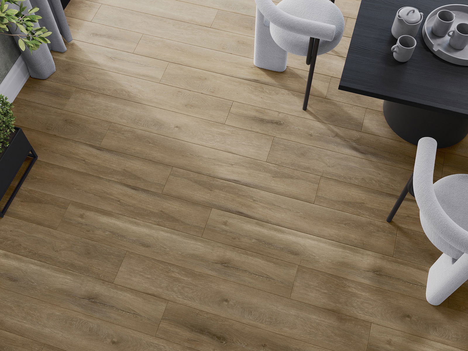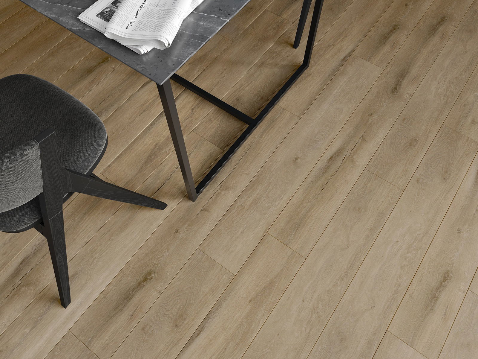 Τα πάνελ διαθέτουν αρμό σε σχήμα V σε όλες τις πλευρές - κάθε πλευρά έχει ανοιχτεί με τέτοιο τρόπο ώστε, όταν τοποθετηθούν, να δημιουργείται σύνδεση σε σχήμα γράμματος V. Αυτός ο σχεδιασμός κάνει το πάτωμα να αποκτά εμφανέστερη δομή, προσδίδοντάς του βάθος και αισθητικό χαρακτήρα. Αυτό το αποτέλεσμα εκτιμάται ιδιαίτερα σε σύγχρονες διακοσμήσεις, όπου οι λεπτομέρειες αναδεικνύουν την ξεχωριστή εμφάνιση του εσωτερικού.