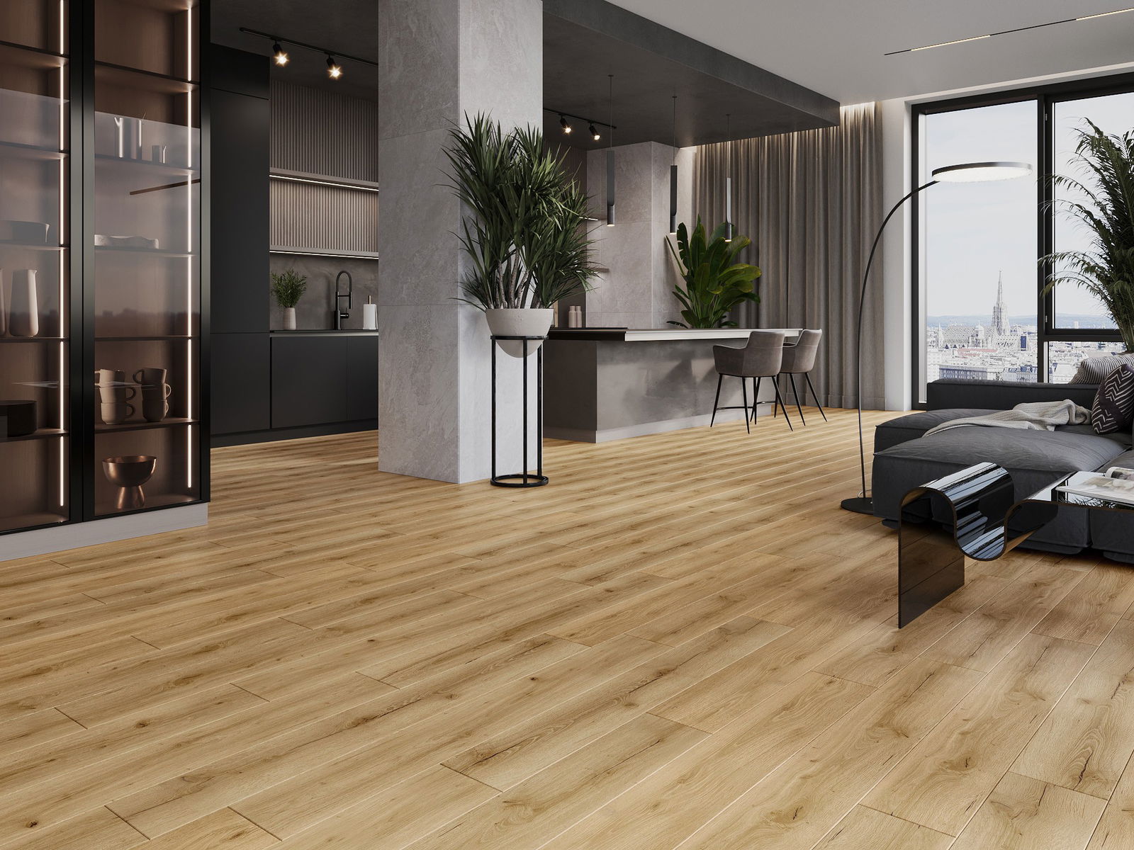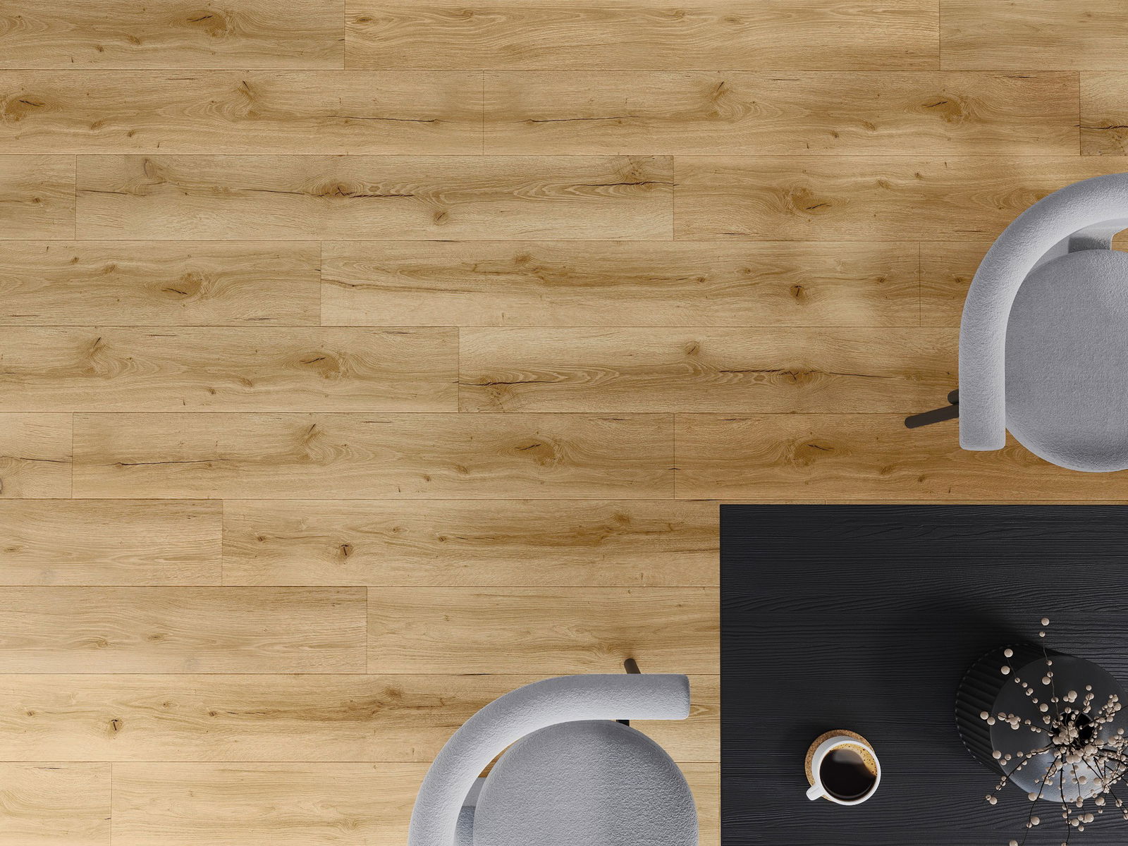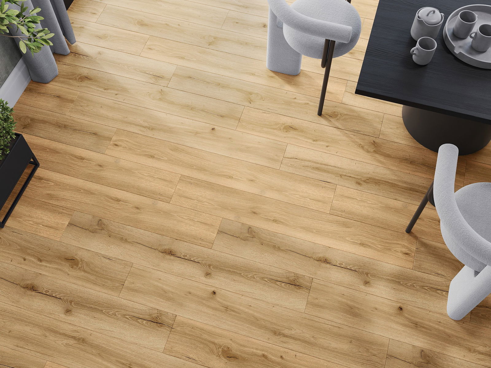 Τα πάνελ διαθέτουν αρμό σε σχήμα V σε όλες τις πλευρές - κάθε πλευρά έχει ανοιχτεί με τέτοιο τρόπο ώστε, όταν τοποθετηθούν, να δημιουργείται σύνδεση σε σχήμα γράμματος V. Αυτός ο σχεδιασμός κάνει το πάτωμα να αποκτά εμφανέστερη δομή, προσδίδοντάς του βάθος και αισθητικό χαρακτήρα. Αυτό το αποτέλεσμα εκτιμάται ιδιαίτερα σε σύγχρονες διακοσμήσεις, όπου οι λεπτομέρειες αναδεικνύουν την ξεχωριστή εμφάνιση του εσωτερικού.