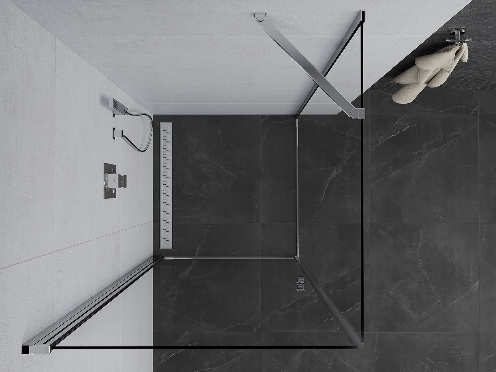 Η πρακτική και άνετη λαβή κατασκευάζεται από ανθεκτικό και αντοχής μέταλλο. Ο μοντέρνος σχεδιασμός σε συνδυασμό με το φινίρισμα που ταιριάζει με το χρώμα των προφίλ προσδίδει στο σύνολο μια σύγχρονη και κομψή εμφάνιση, τονίζοντας την αισθητική κάθε μπάνιου.