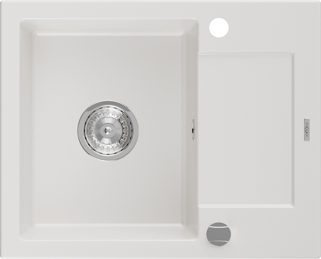 Mexen Enzo νεροχύτης γρανίτης 1-θέσεων με αποστραγγιστήρα 576 x 465 mm, λευκός,